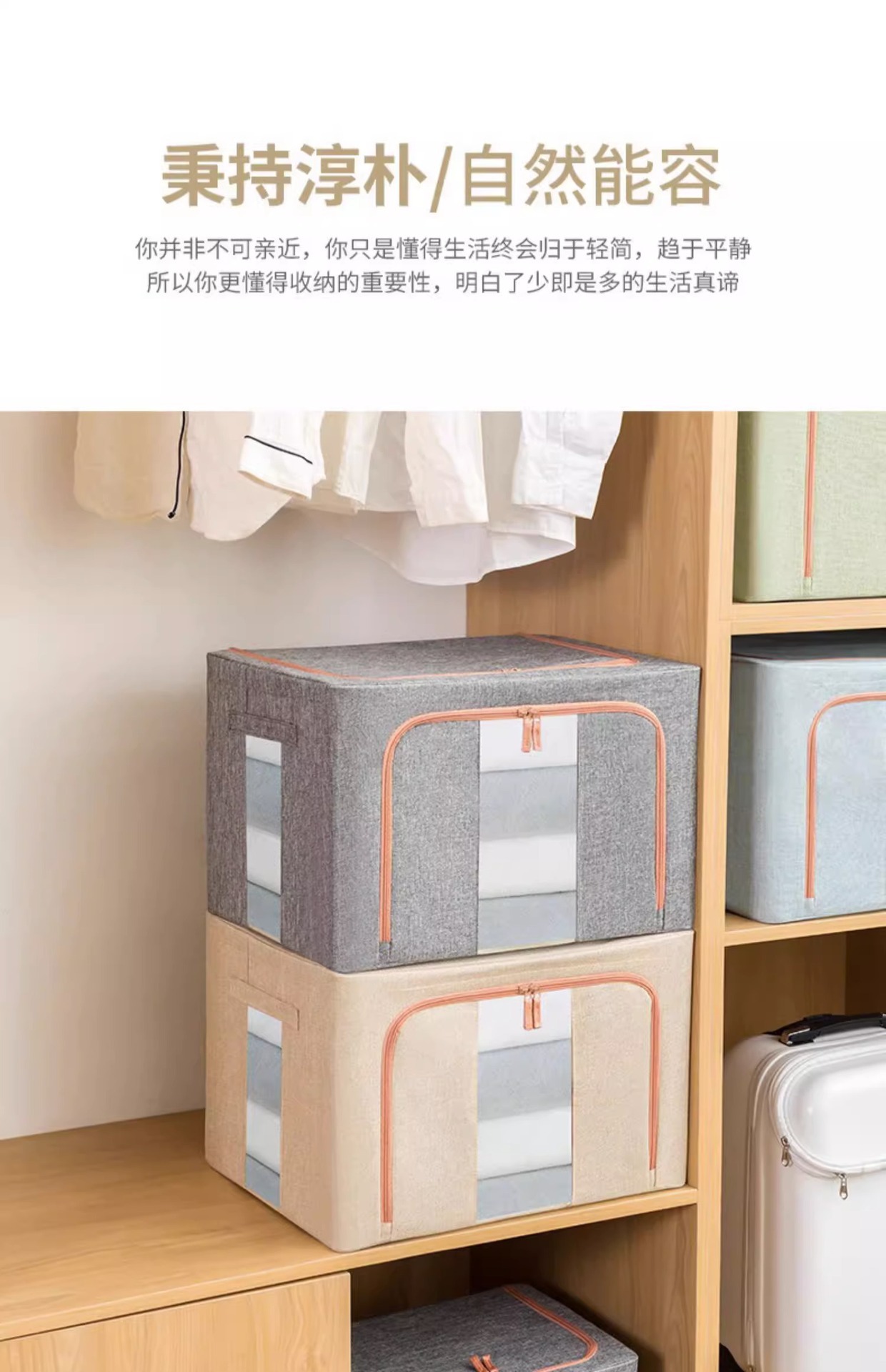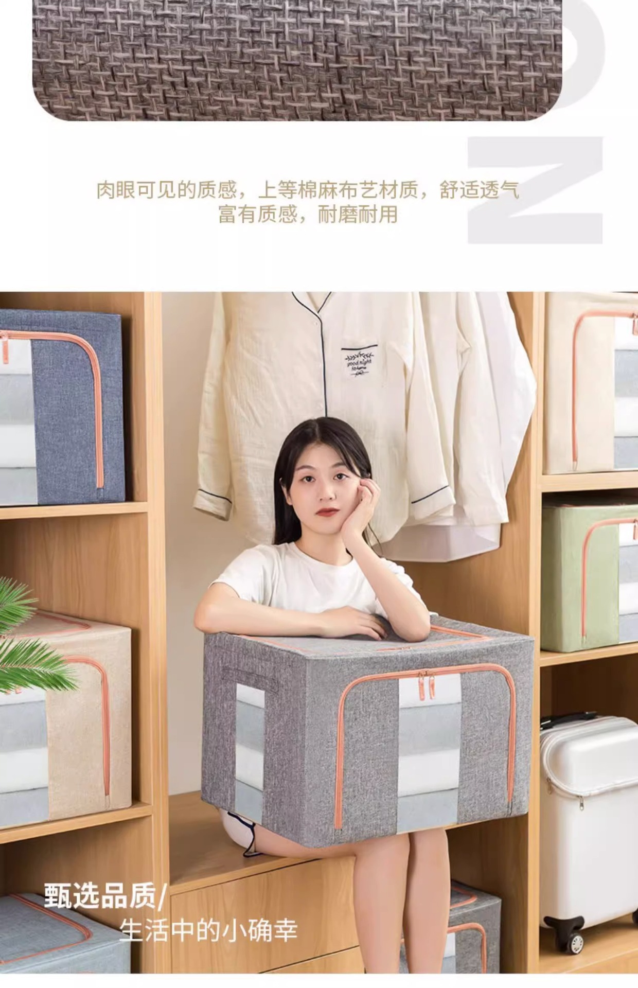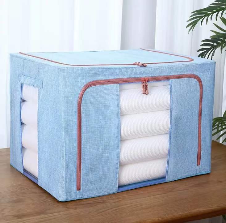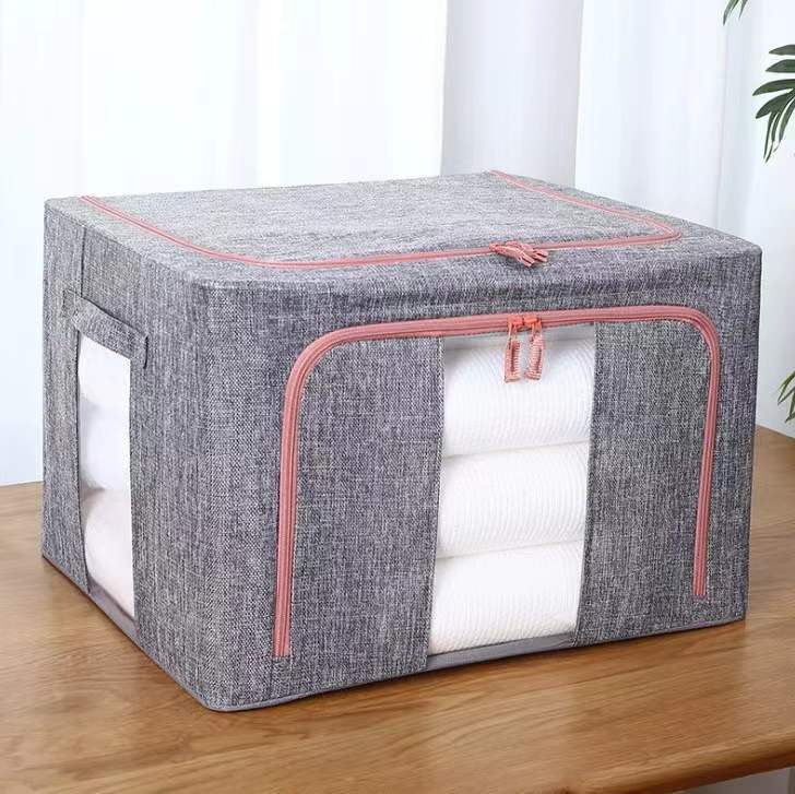 옷장 저장 인공물 대형 강철 프레임 면 및 린넨 접이식 저장 상자 옷 투명 저장 상자 어린이 장난감 보관
