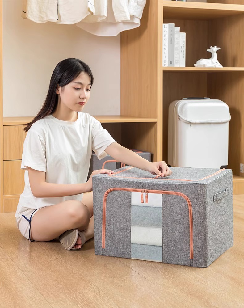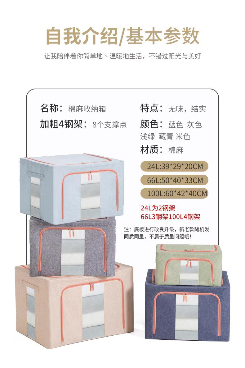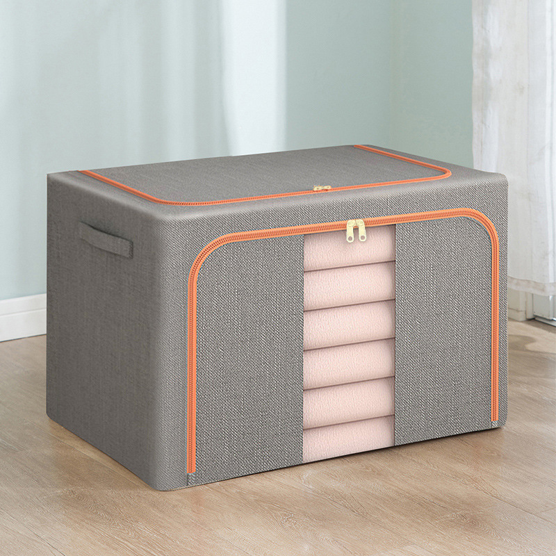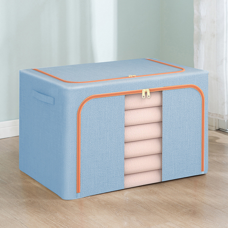 옷장 저장 인공물 대형 강철 프레임 면 및 린넨 접이식 저장 상자 옷 투명 저장 상자 어린이 장난감 보관