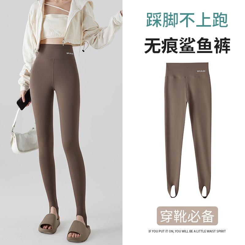상어 바지 여자 바깥 옷 기모 두꺼운 가을과 겨울 2024 새로운 높은 허리 복부 엉덩이 리프팅 추적없는 바비 레깅스스토어 가기