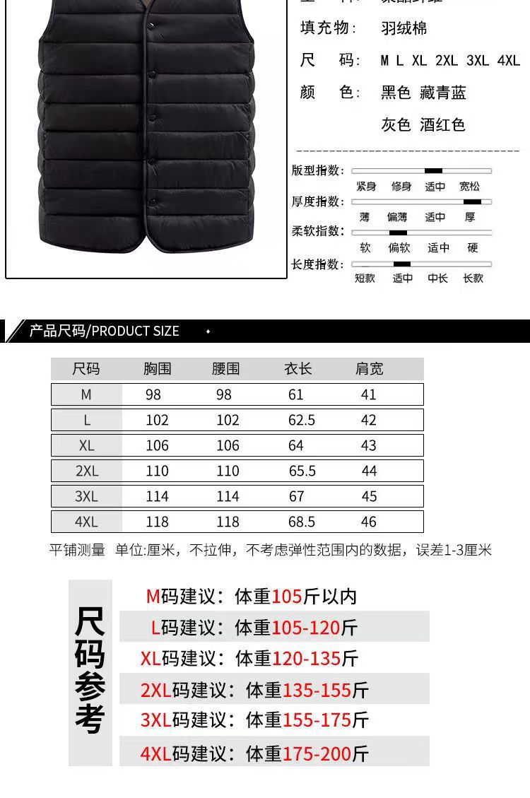 2024 새로운 가을과 겨울 라이트면 패딩 재킷 남성 조끼 짧은 조끼 플러스 사이즈 빛 내부 및 외부 조끼스토어 가기