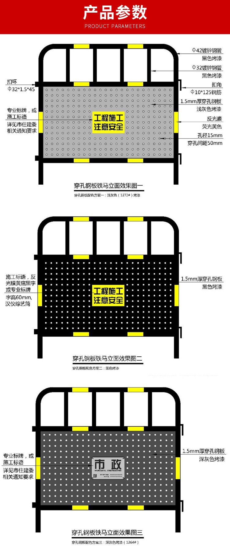 펀치된 도시철 말 가드레일 도로 건설 안전 도로 수리 경고 임시 활동 격리는 두껍게 충돌 방지 울타리