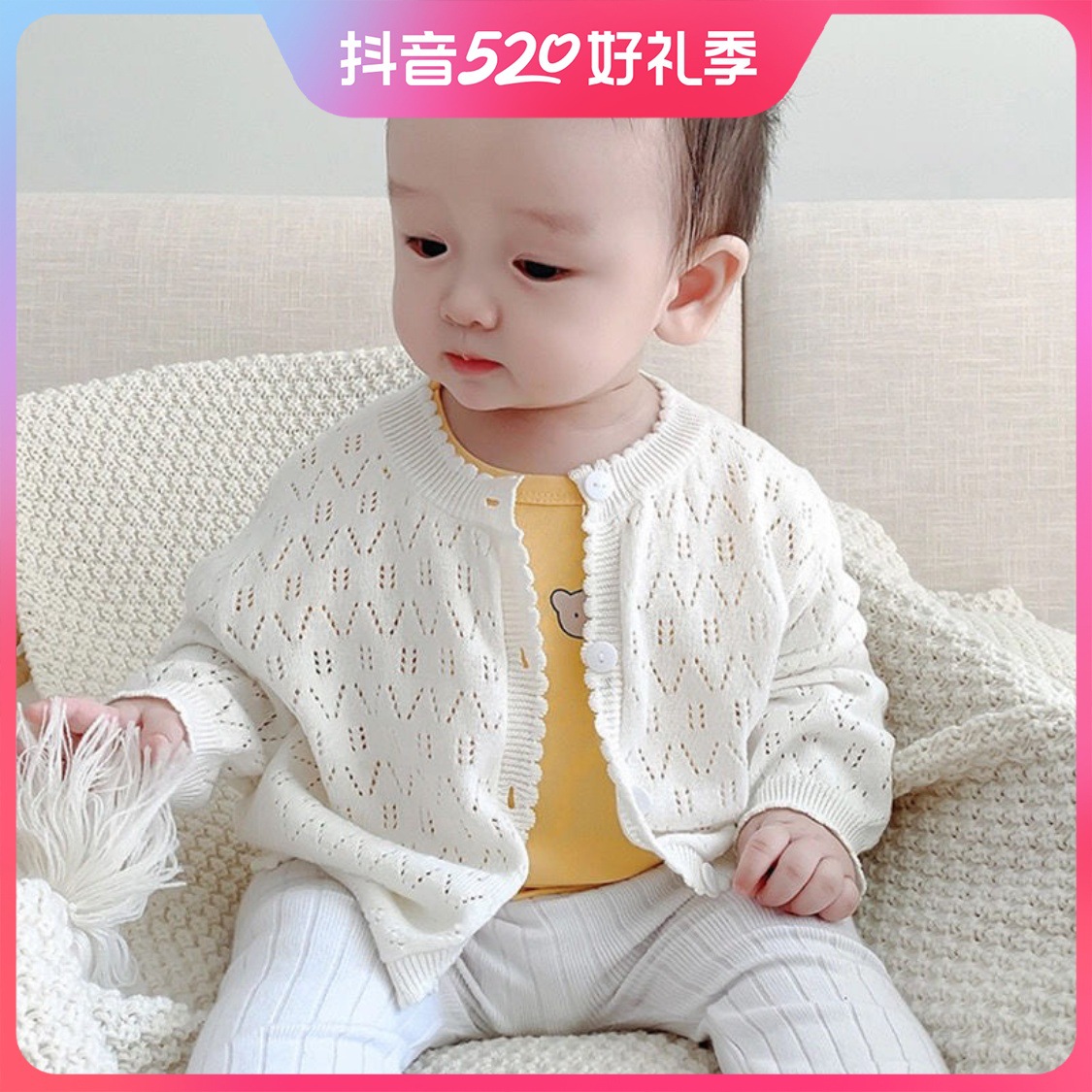 2313 여름 새로운 어린이 에어컨 카디건 얇은 아기 여름 아기 니트 코튼 중공 긴 소매 스웨터스토어 가기