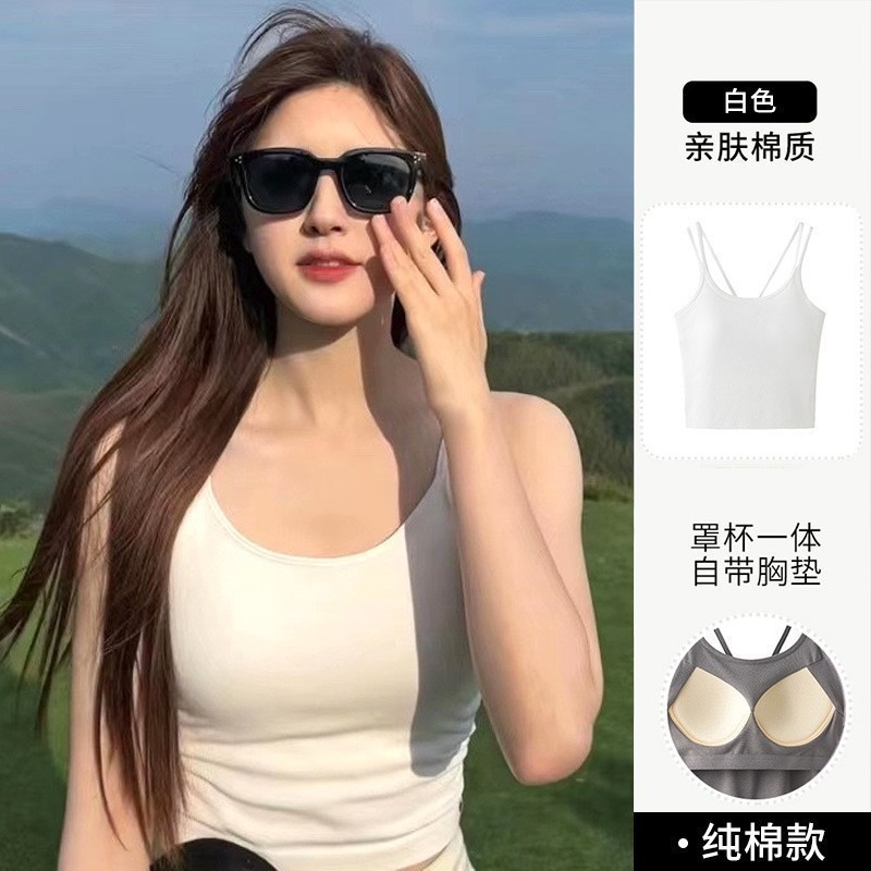 조루시 미백 민소매 탑 여성용 가슴 패드 내장 이너웨어 겸 외출복 고정컵 민소매 이너탑 외출복으로도 착용 가능스토어 가기