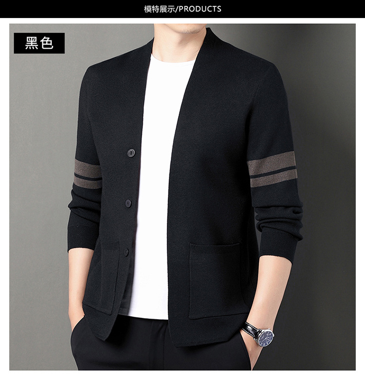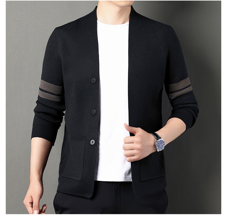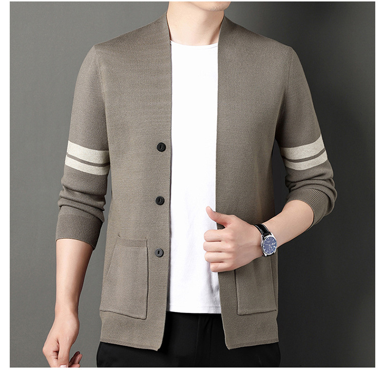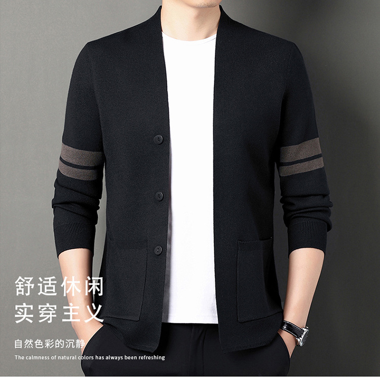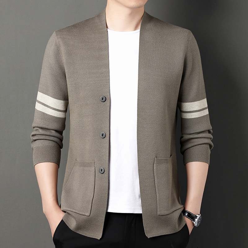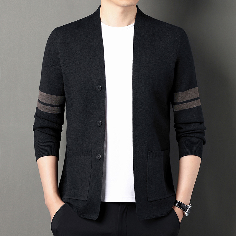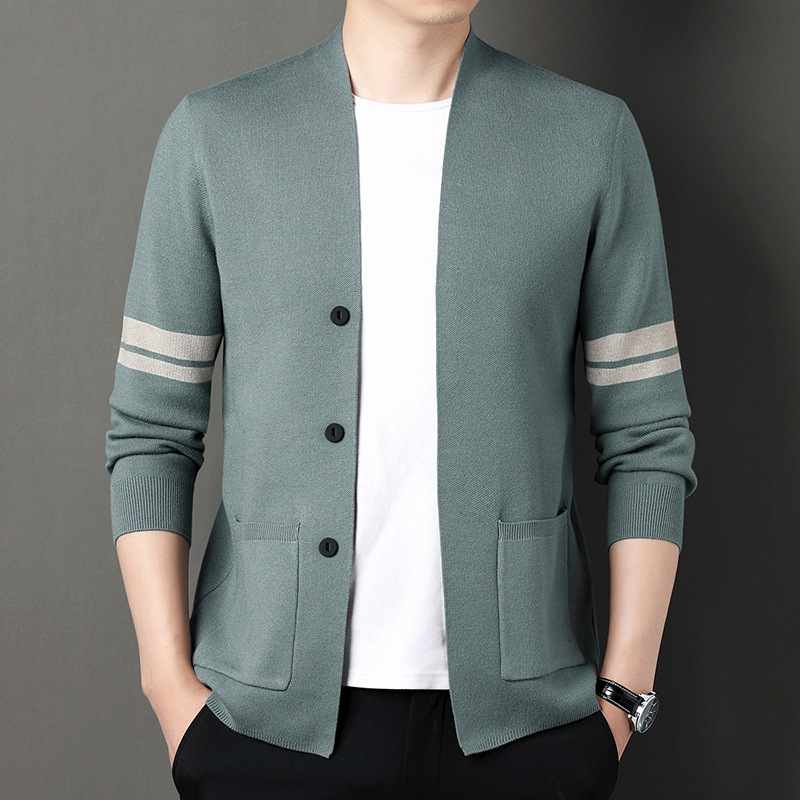 트렌디한 남성용 가디건 스웨터 긴팔 봄 가을 고급스러운 중년 남성용 투바이어블 패셔너블하고 멋진 니트 재킷스토어 가기