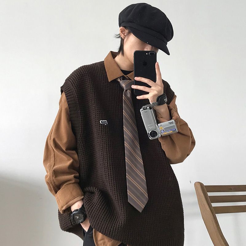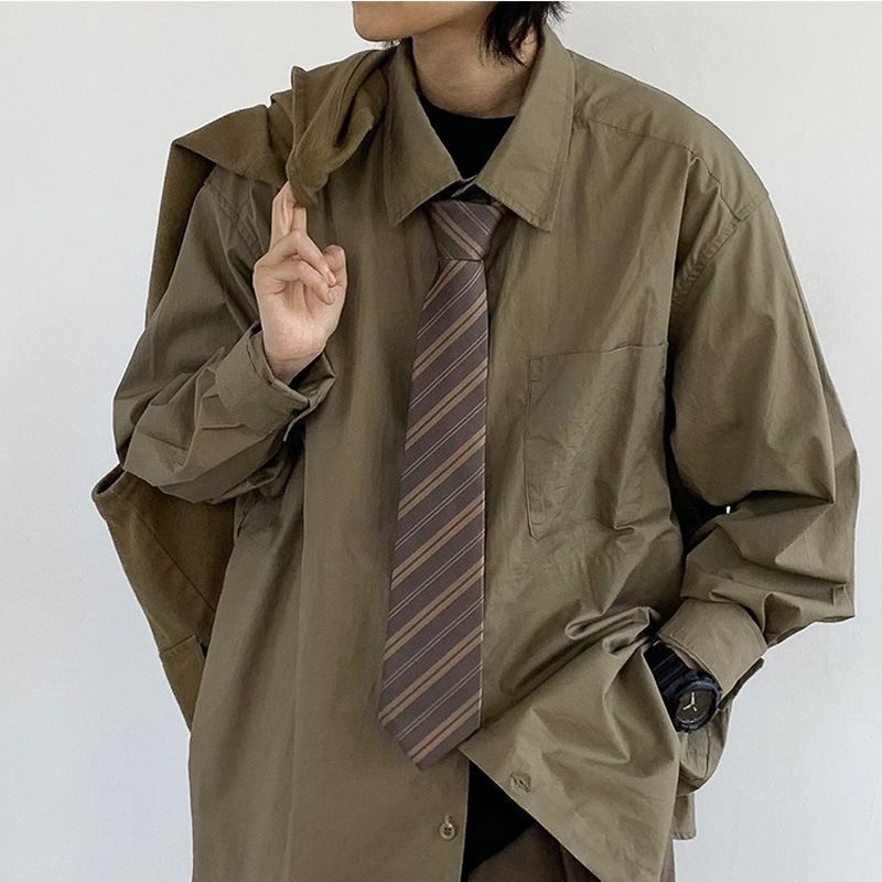남학생과 여학생을위한 샴페인 스트라이프 JK 타이 레트로 커피 다크 브라운 일본식 대학 스타일스토어 가기