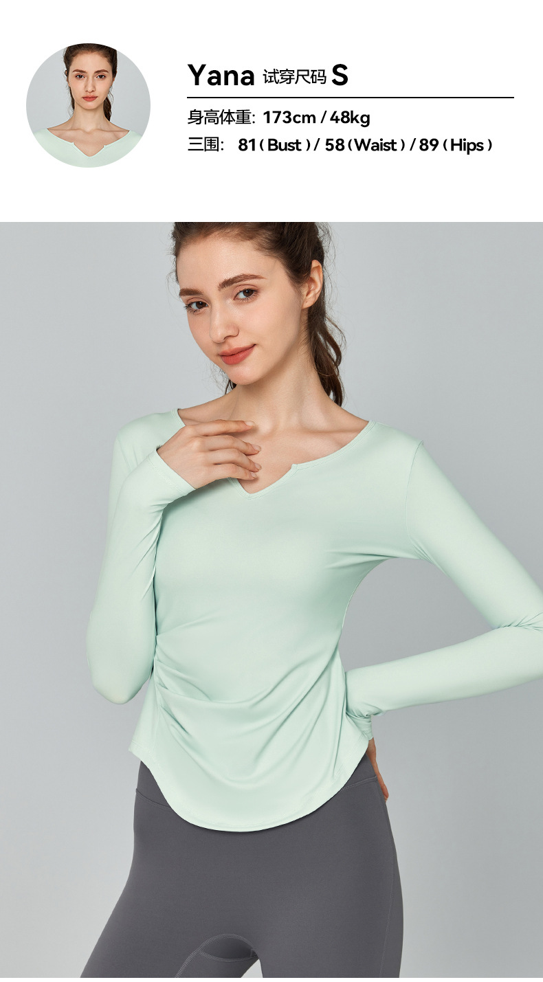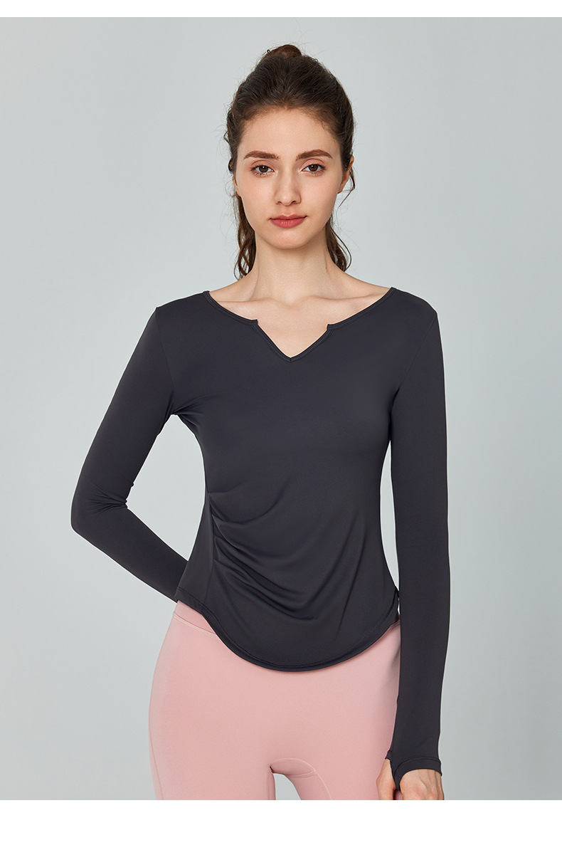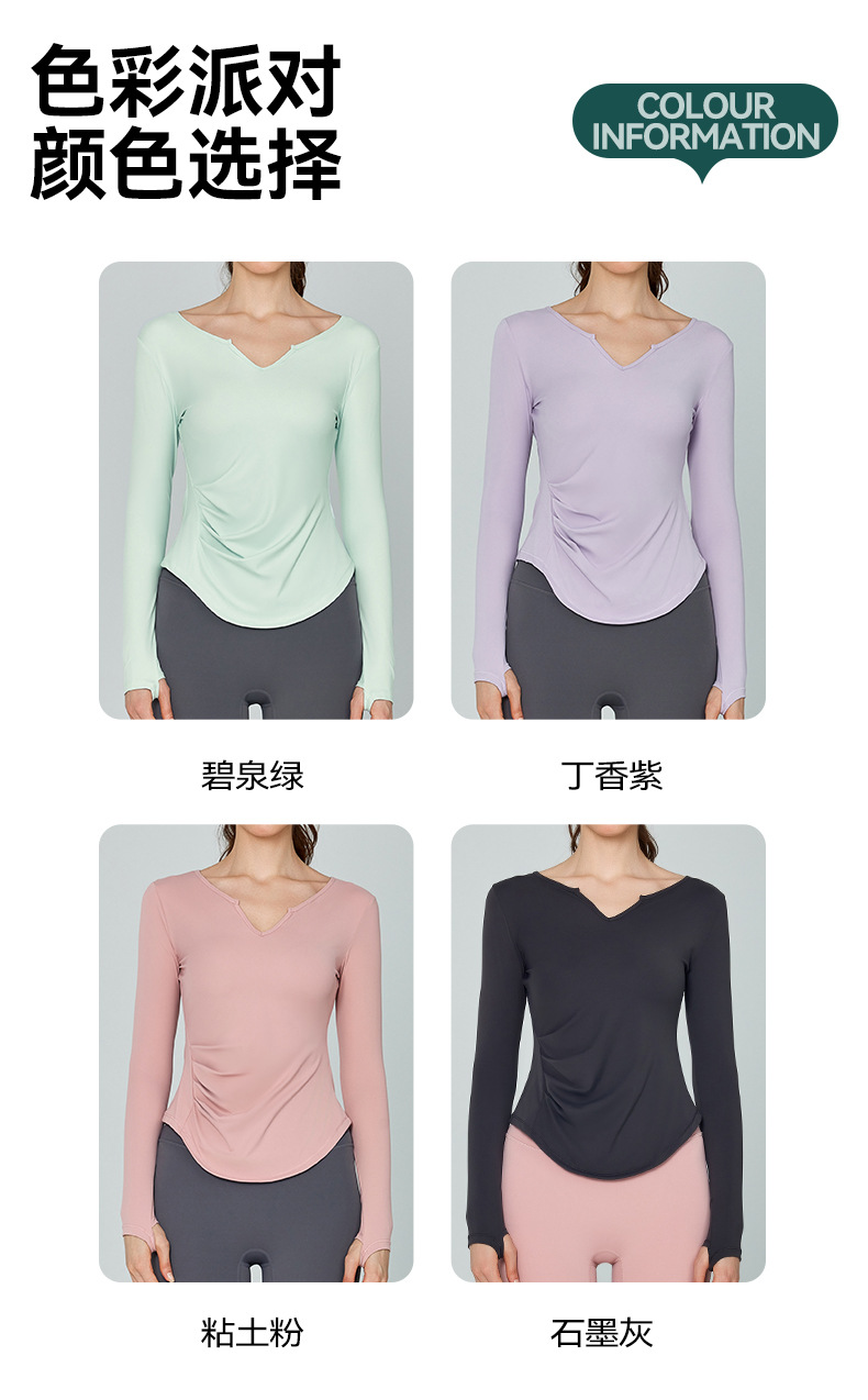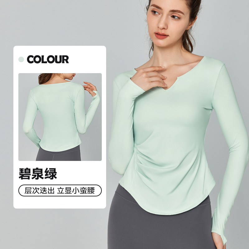 가을 겨울 브이넥 요가복 긴팔 단색 심플 트레이닝 피트니스 스포츠 상의 야외 러닝 통기성 속건복