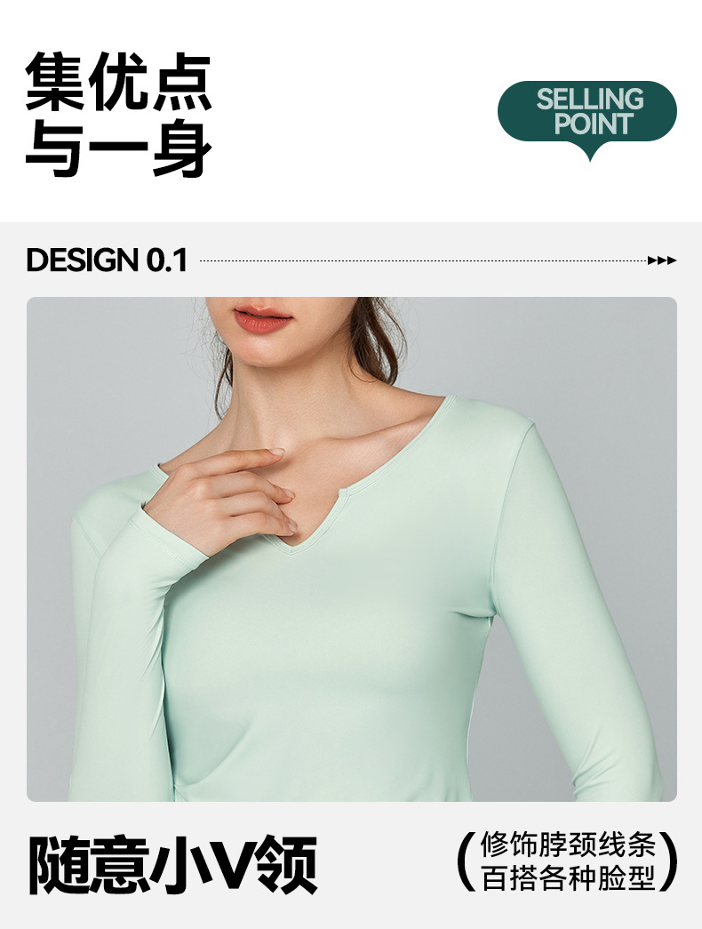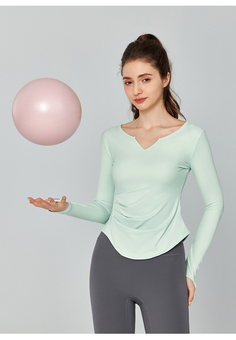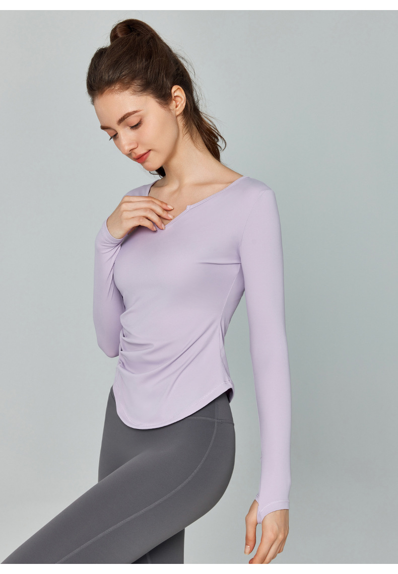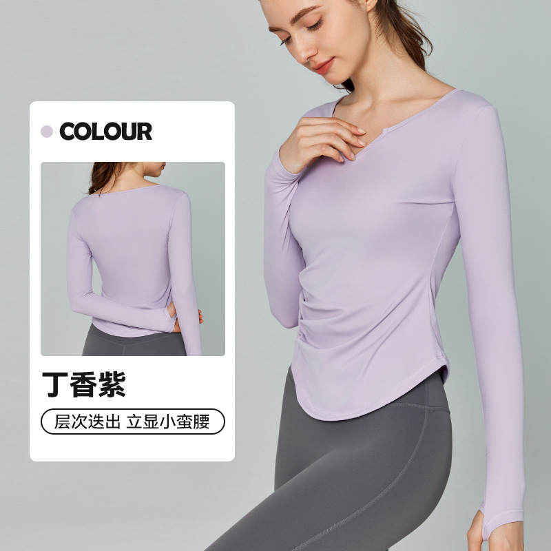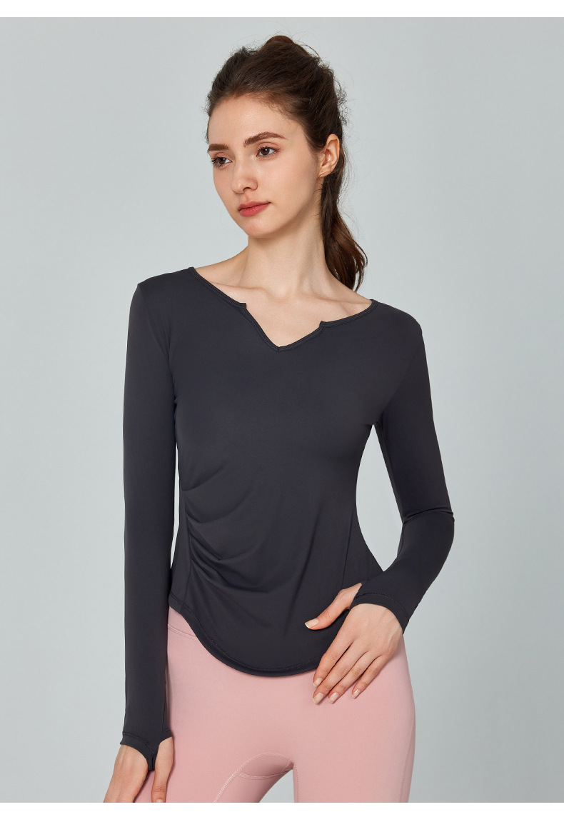 가을 겨울 브이넥 요가복 긴팔 단색 심플 트레이닝 피트니스 스포츠 상의 야외 러닝 통기성 속건복