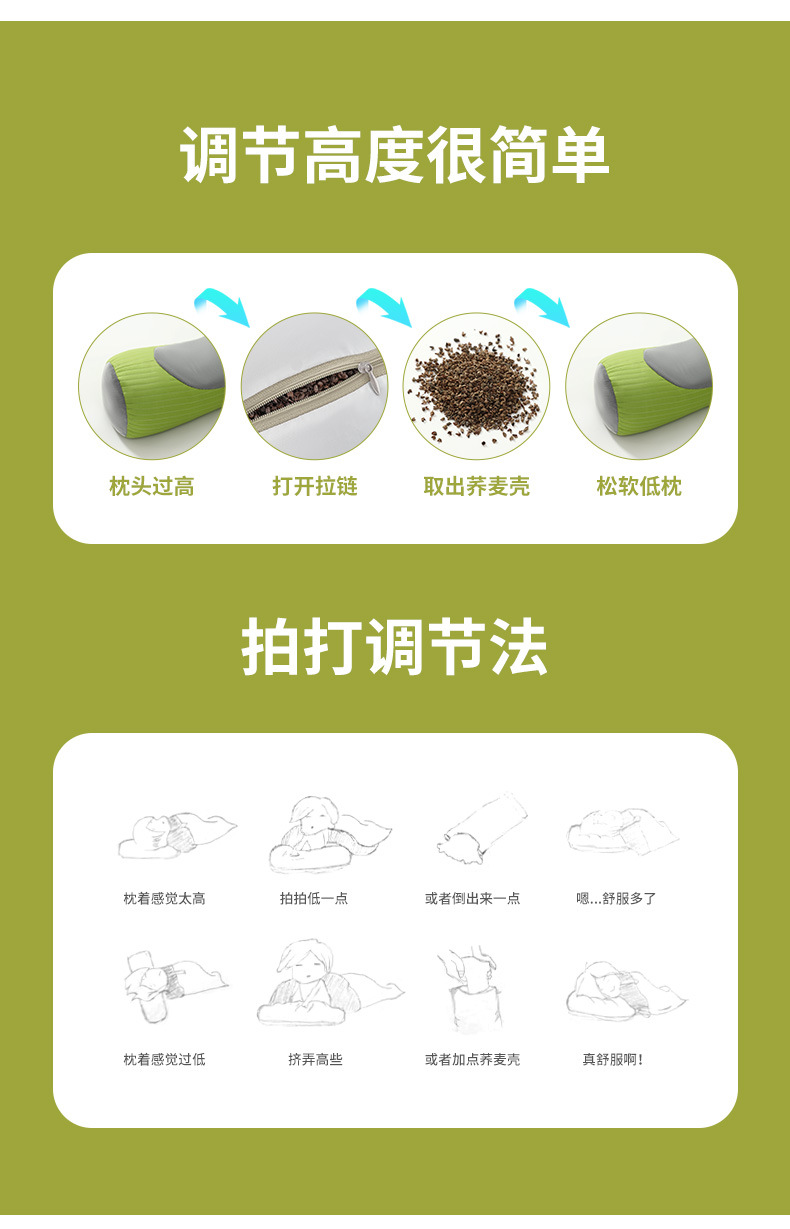 메밀껍질 꽃목베개, 통메밀베개, 성인 학생 기숙사용 싱글 메밀베개