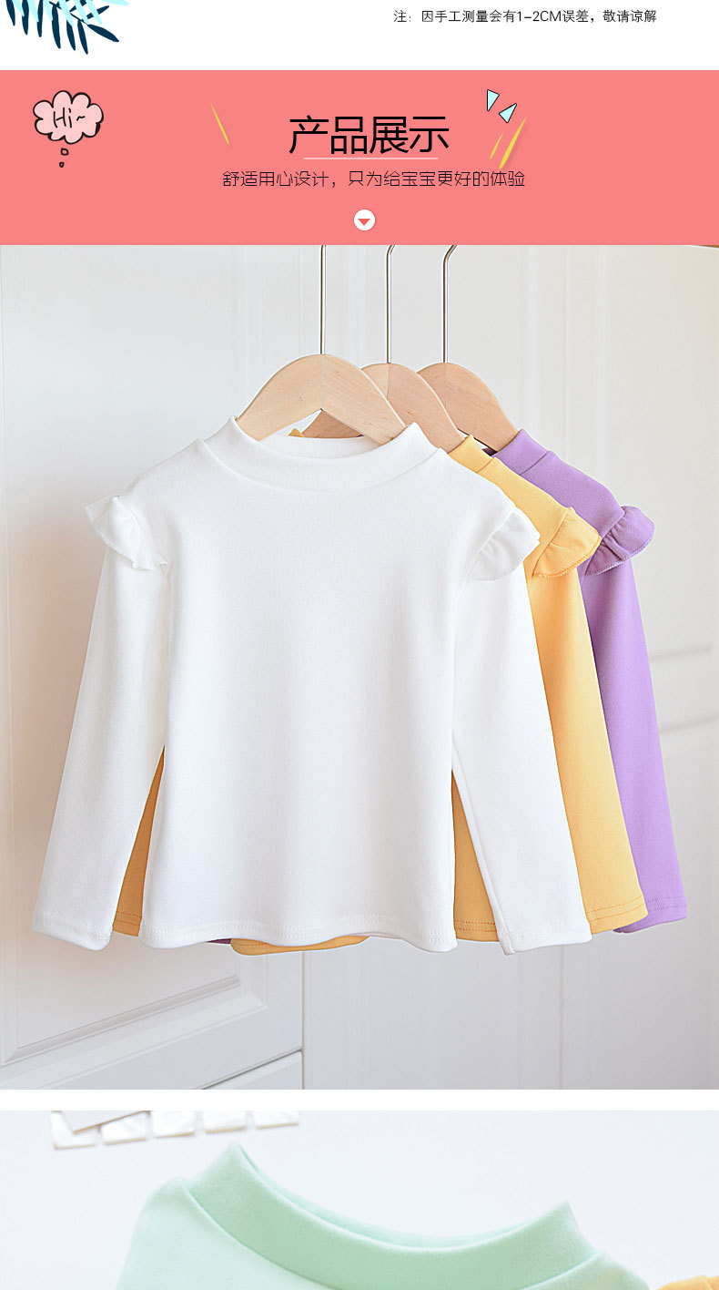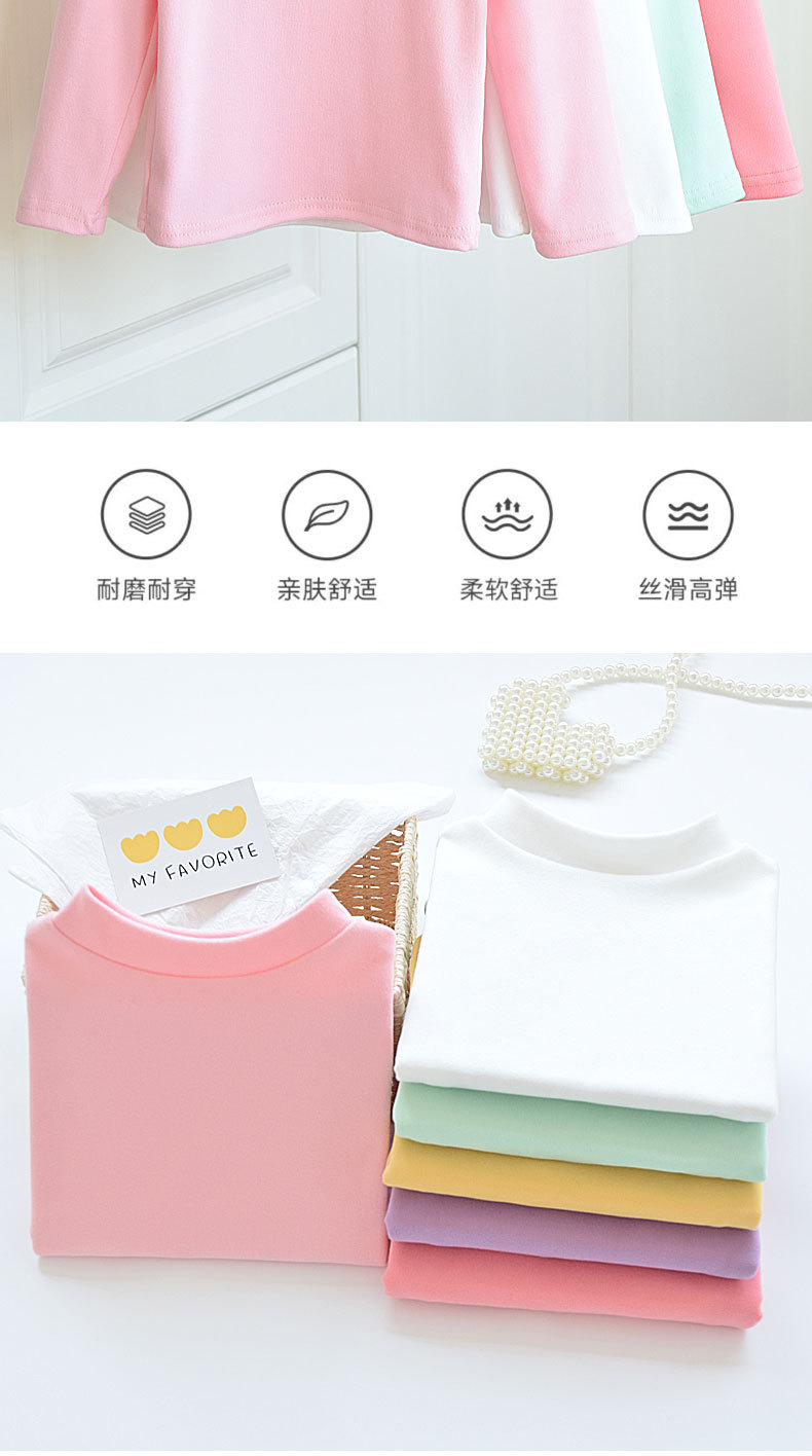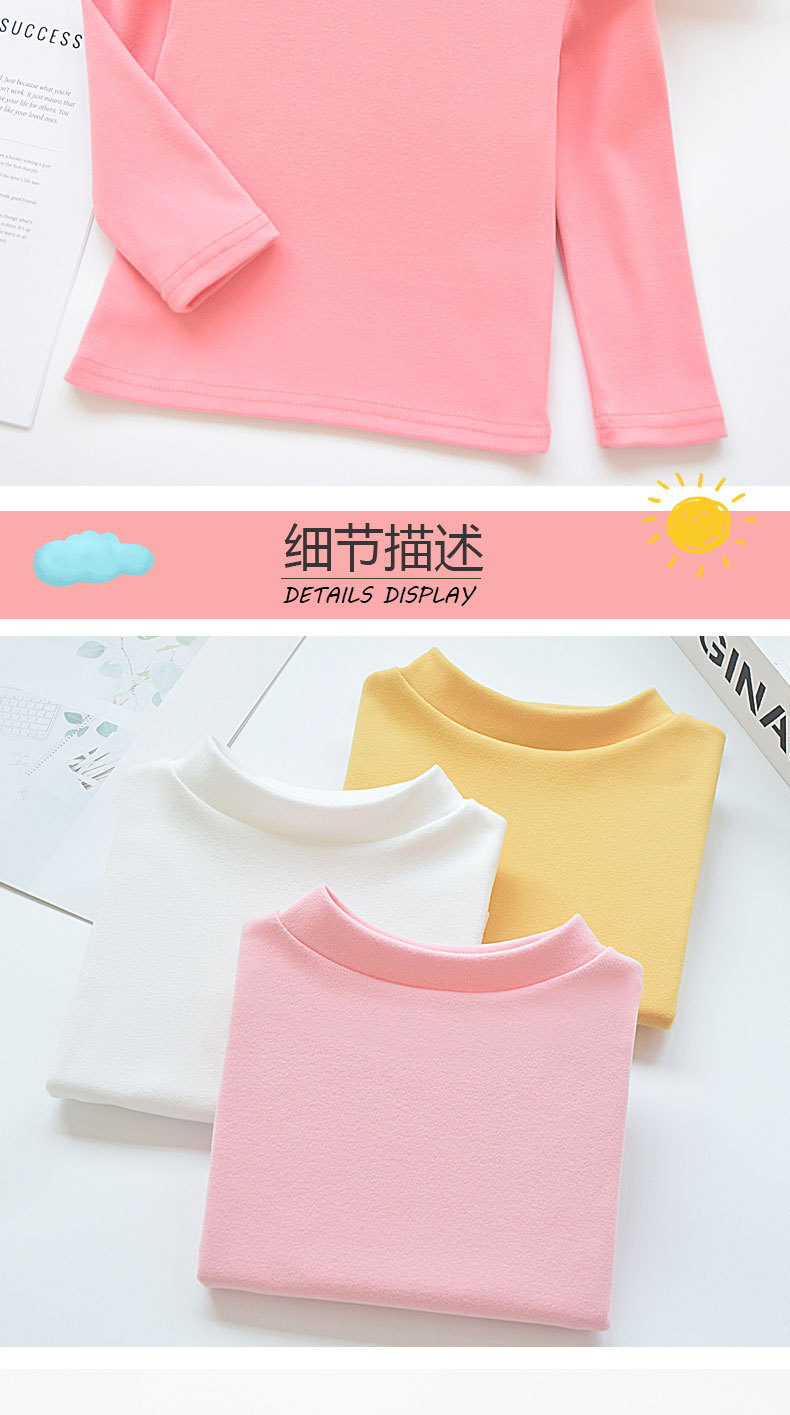 소녀 반 높이 칼라 벨벳베이스 셔츠 가을과 겨울 큰 어린이 내부 겨울 얇은 벨벳 가을 옷 어린이 소녀의 따뜻한 탑스토어 가기
