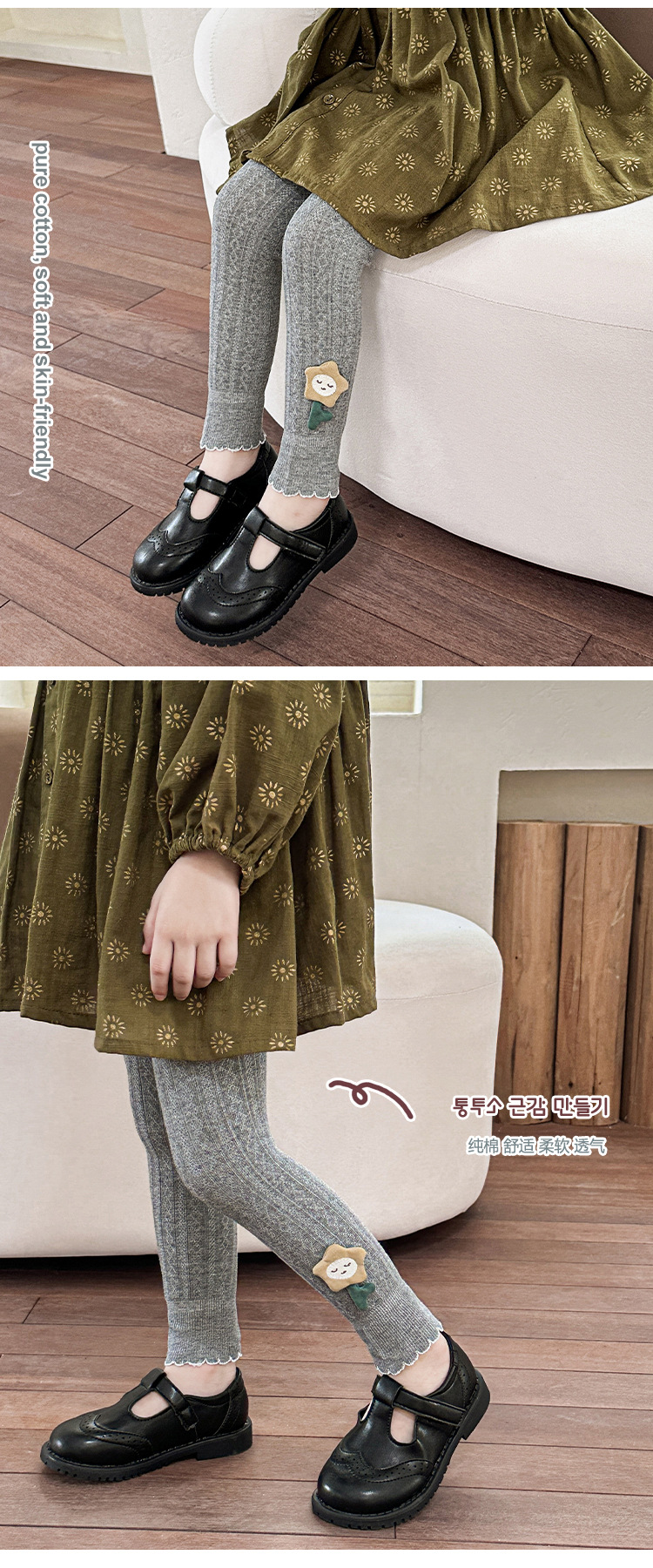 봄과 가을 얇은 벨벳 여자 한국 스타일 패션 레이스 코튼 서양식 발목 길이 바지 중소 어린이 아기 레깅스스토어 가기
