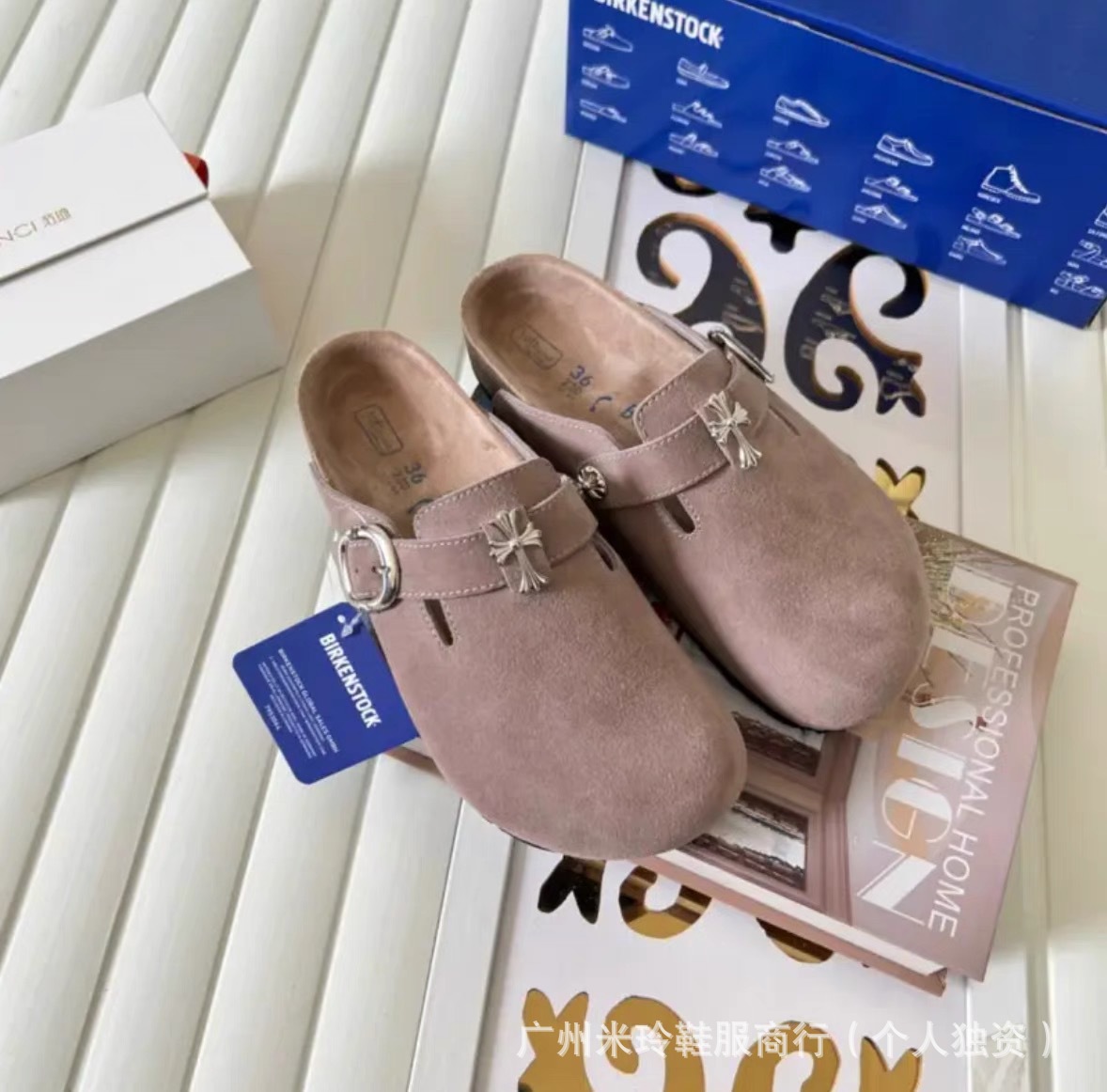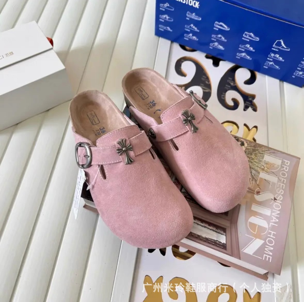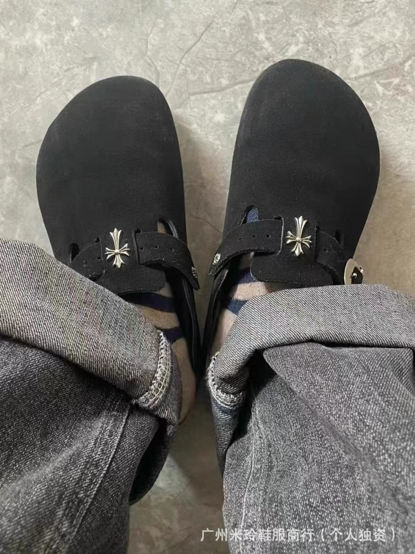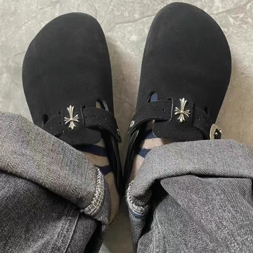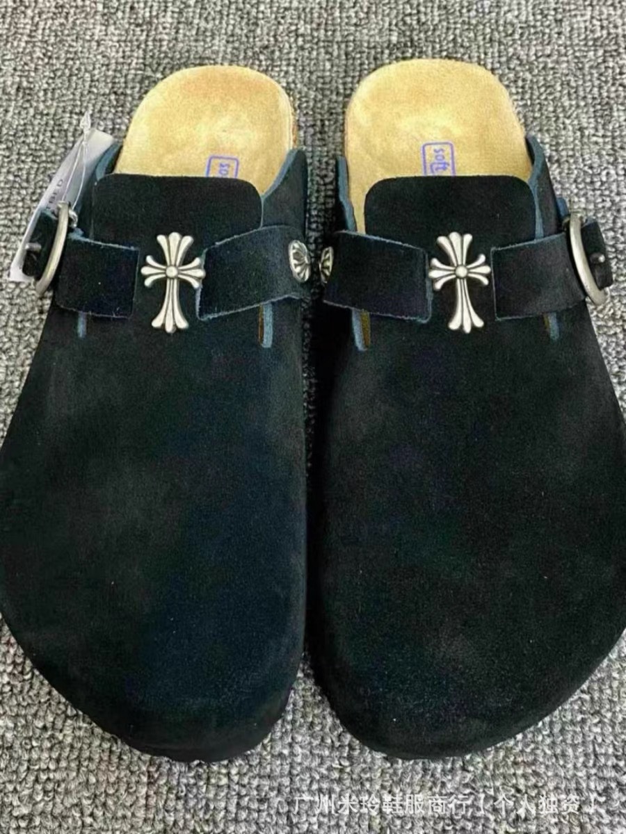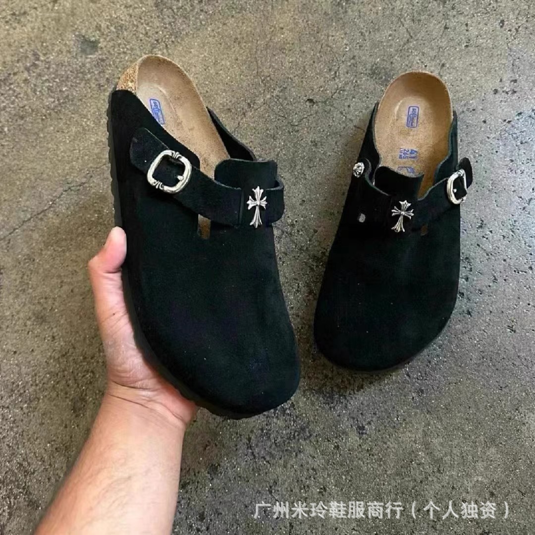 Croxin Joint Bocken Baotou 슬리퍼 가죽 코르크 블랙 크로스 슬리퍼 외부 착용 캐주얼 게으른 슬리퍼스토어 가기