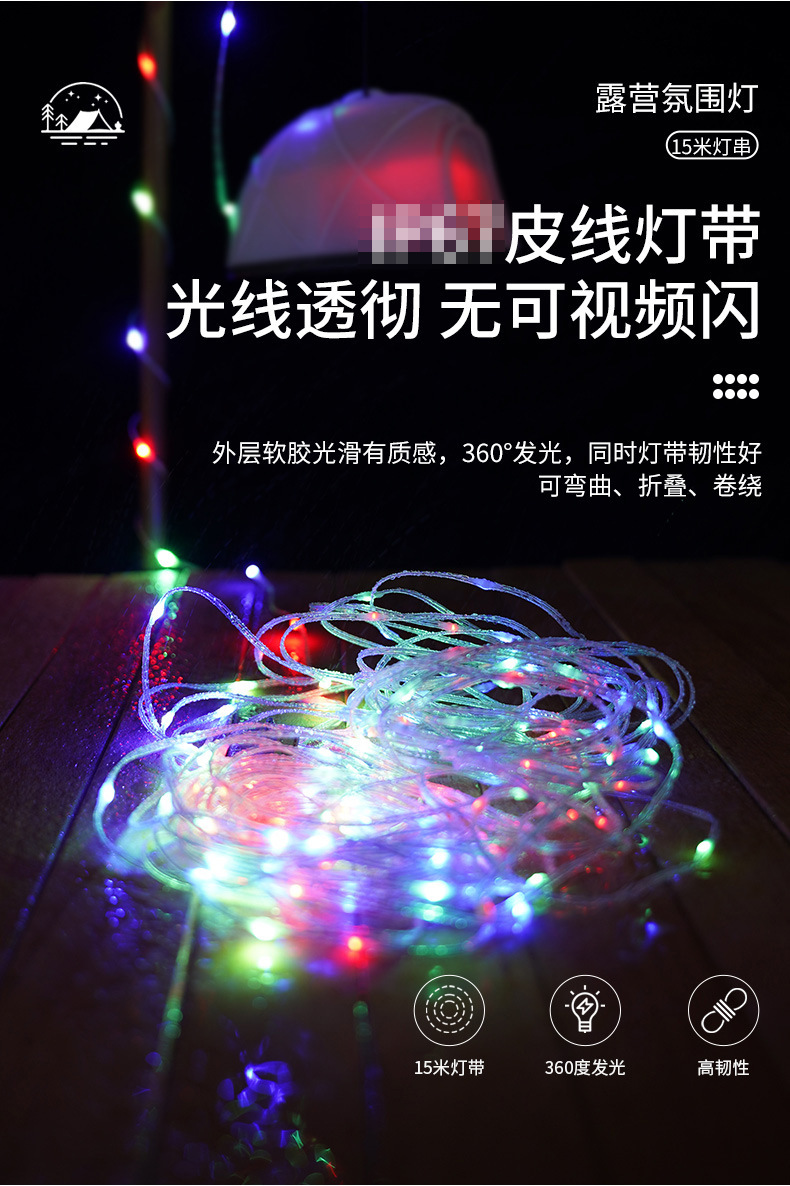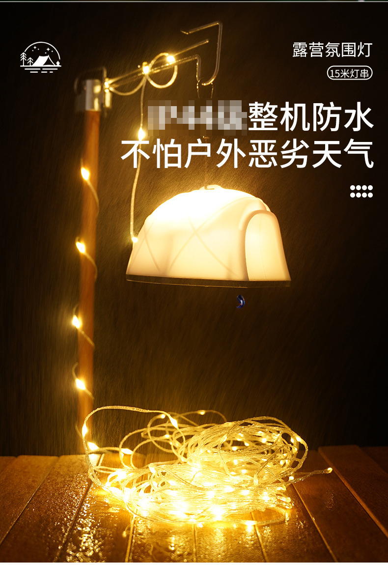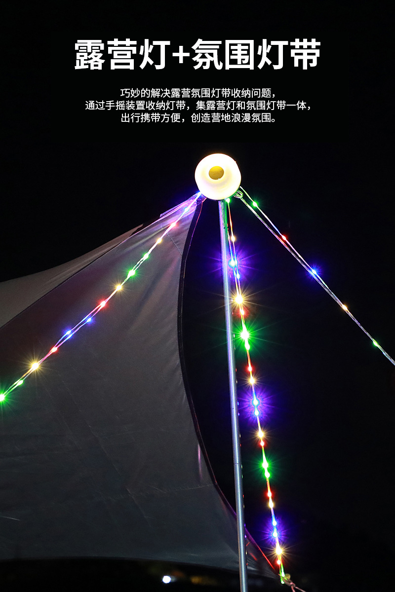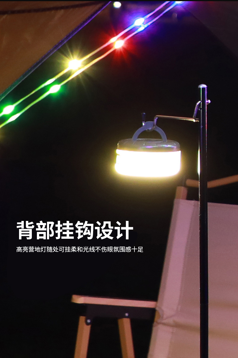 국경을 넘는 야외 캠핑 램프 USB 충전 텐트 모양 줄자 램프 LED 분위기 조명 캠핑용 다채로운 스트링 라이트 휴대용스토어 가기