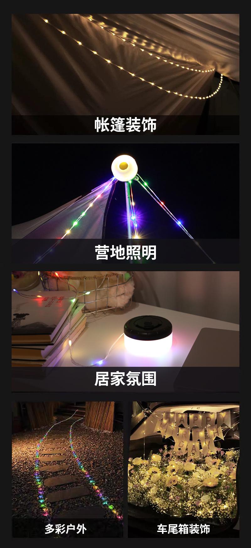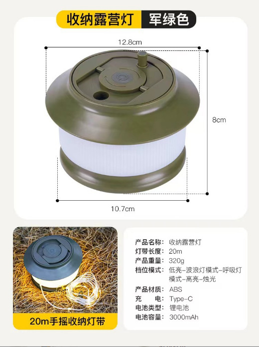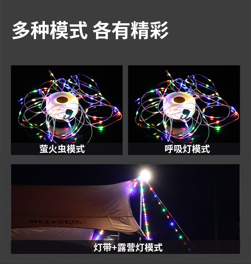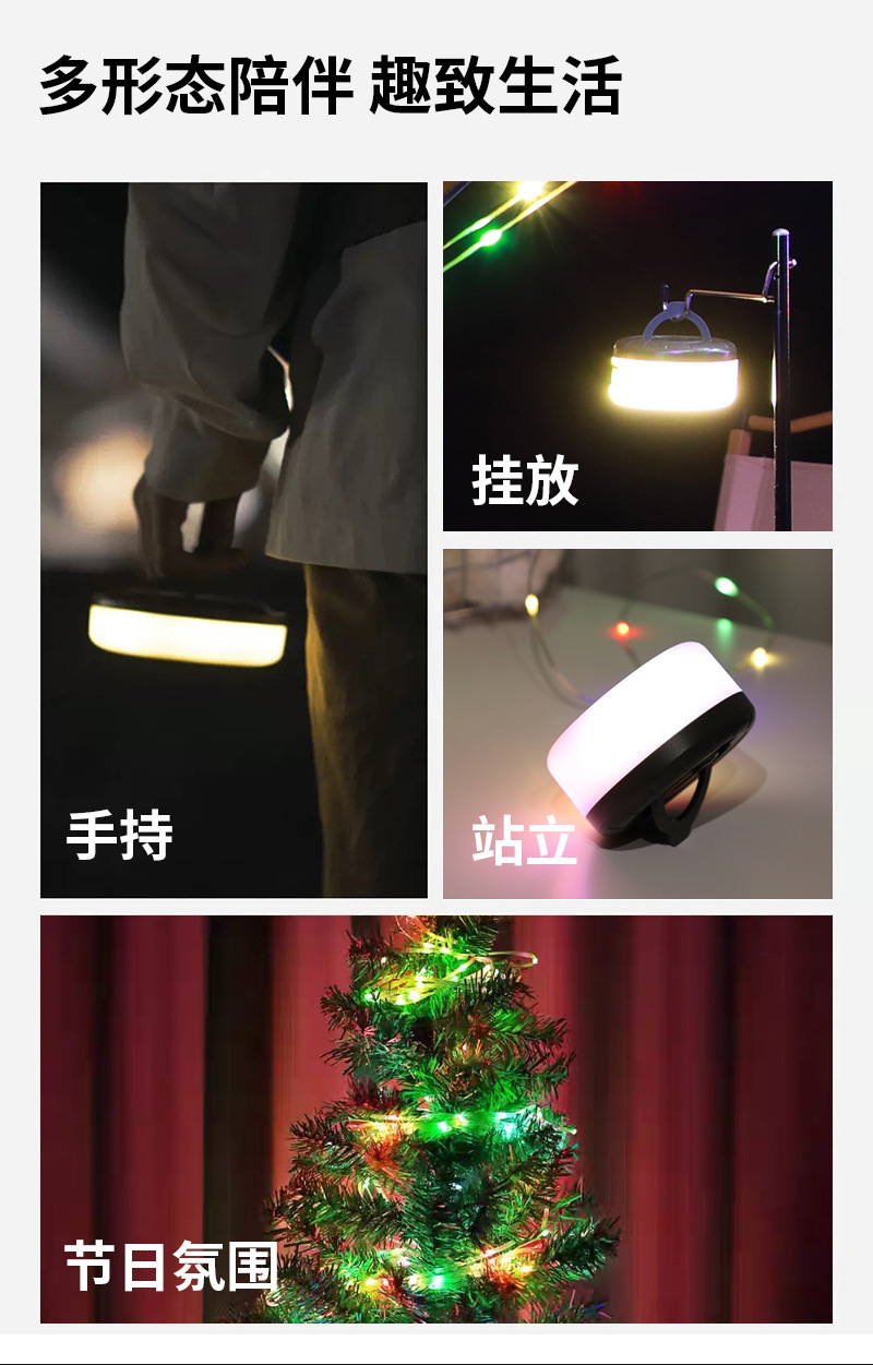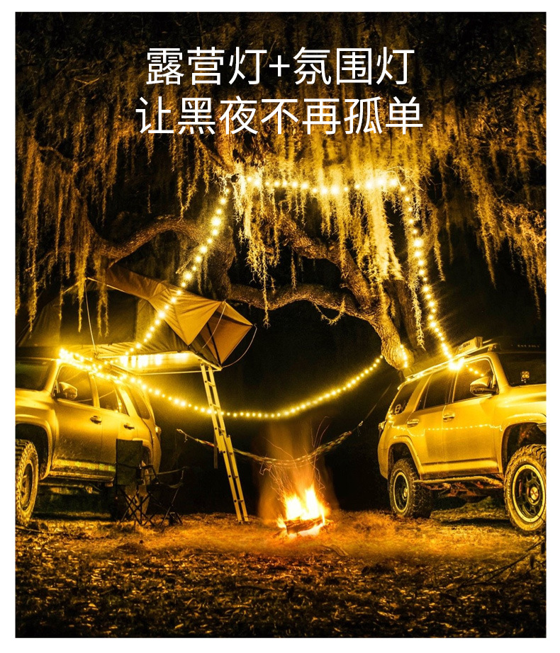 국경을 넘는 야외 캠핑 램프 USB 충전 텐트 모양 줄자 램프 LED 분위기 조명 캠핑용 다채로운 스트링 라이트 휴대용스토어 가기