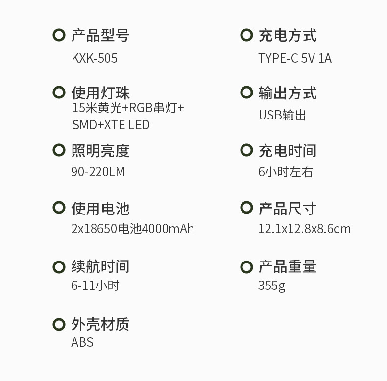 • 505색 조명(15M) 4000mAh