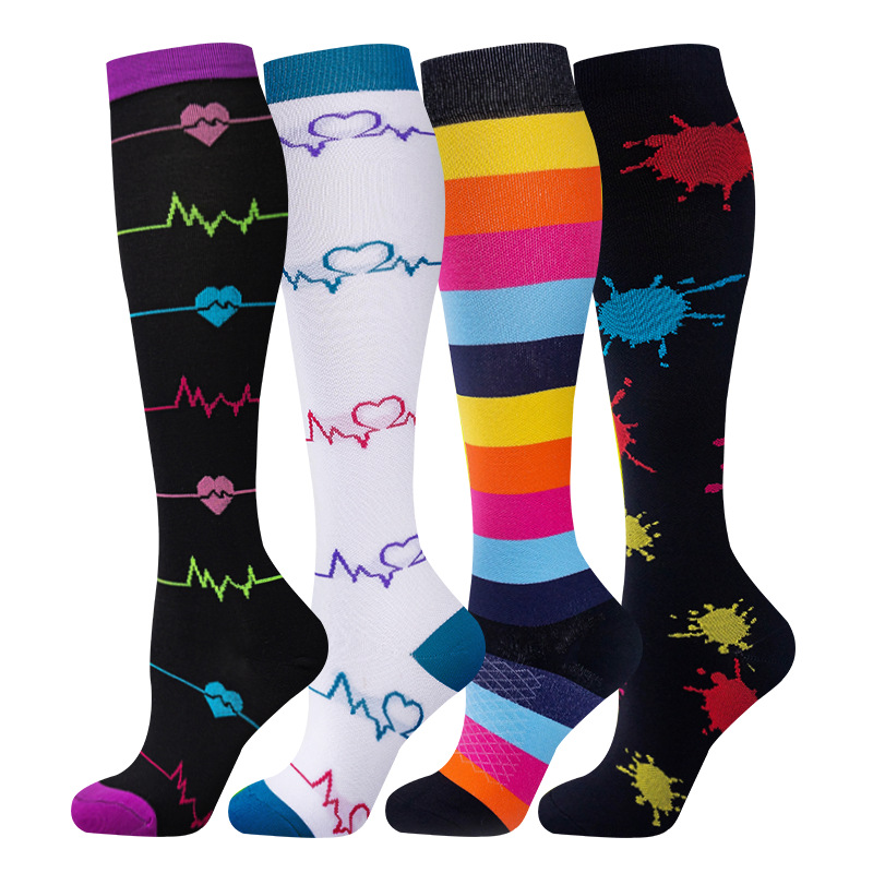 국경 간 나일론 압축 양말 긴 튜브 피트니스 야외 달리기 사이클링 양말 남성과 여성을위한 빠른 건조 통기성 압축 종아리 양말