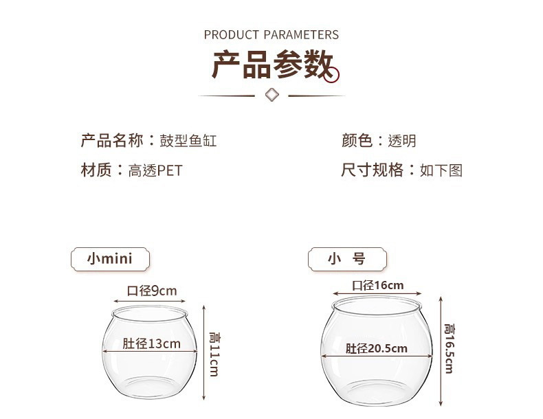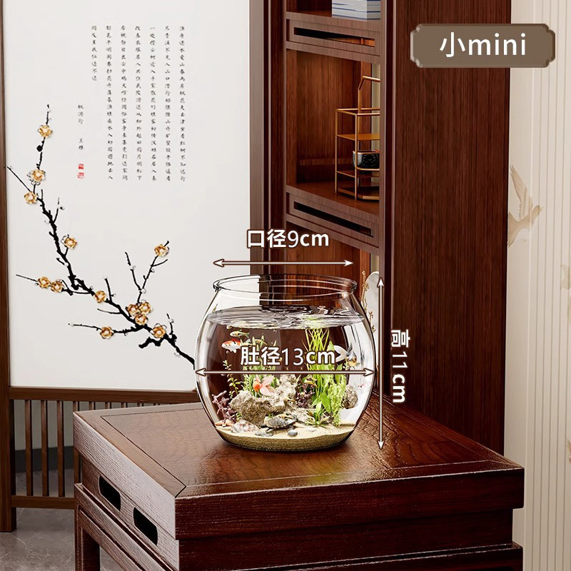 둥근 투명 PET 두꺼운 소형 어항 거실 탁상용 소형 금붕어 어항 가정용 수경재배 낙하방지 수족관
