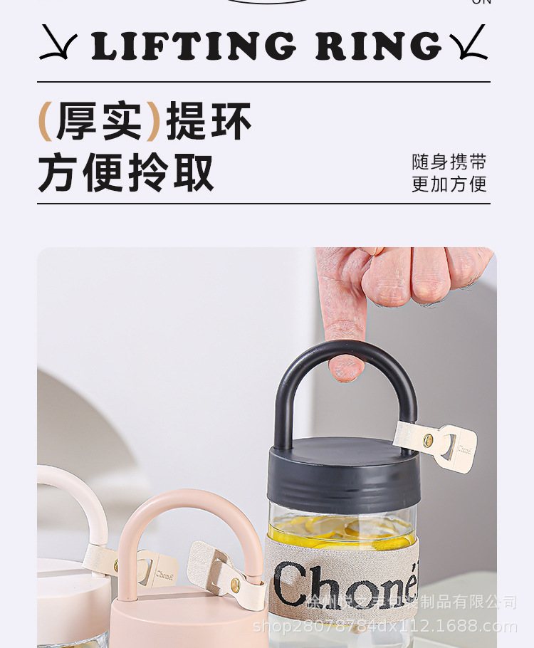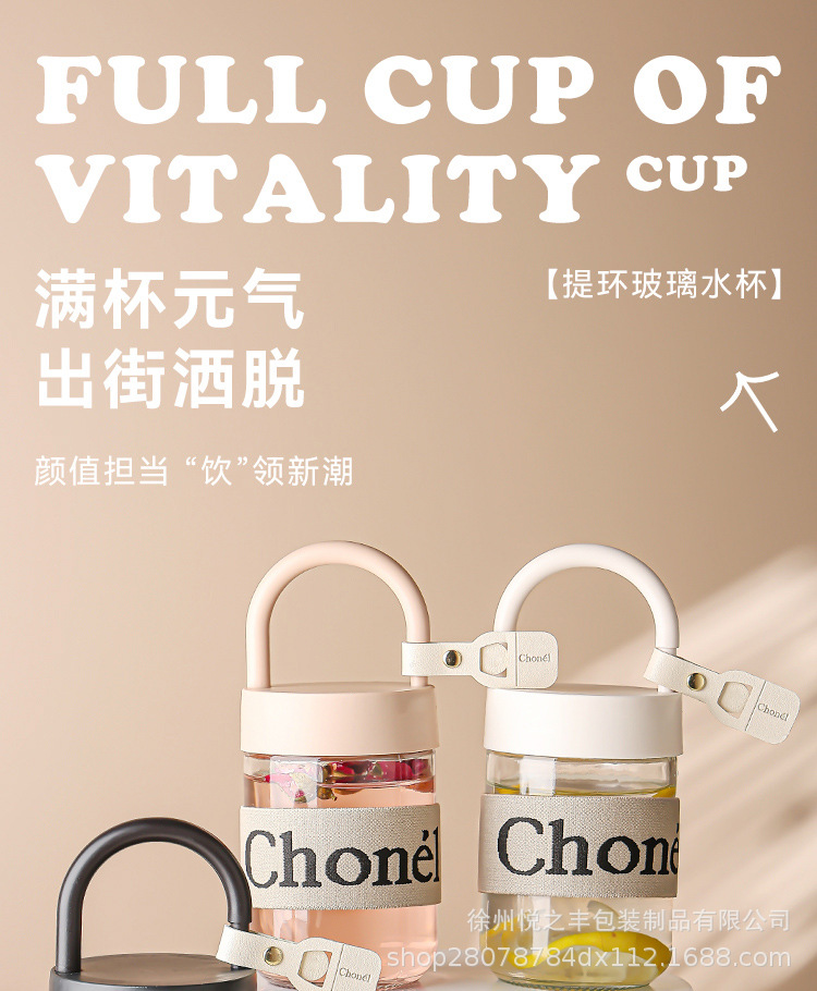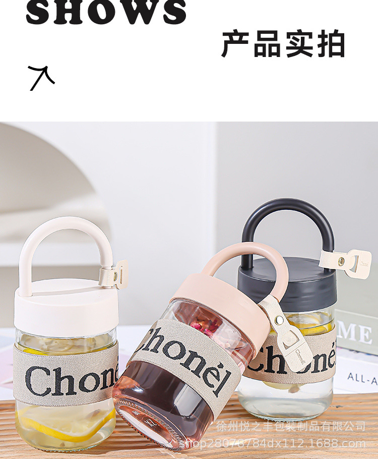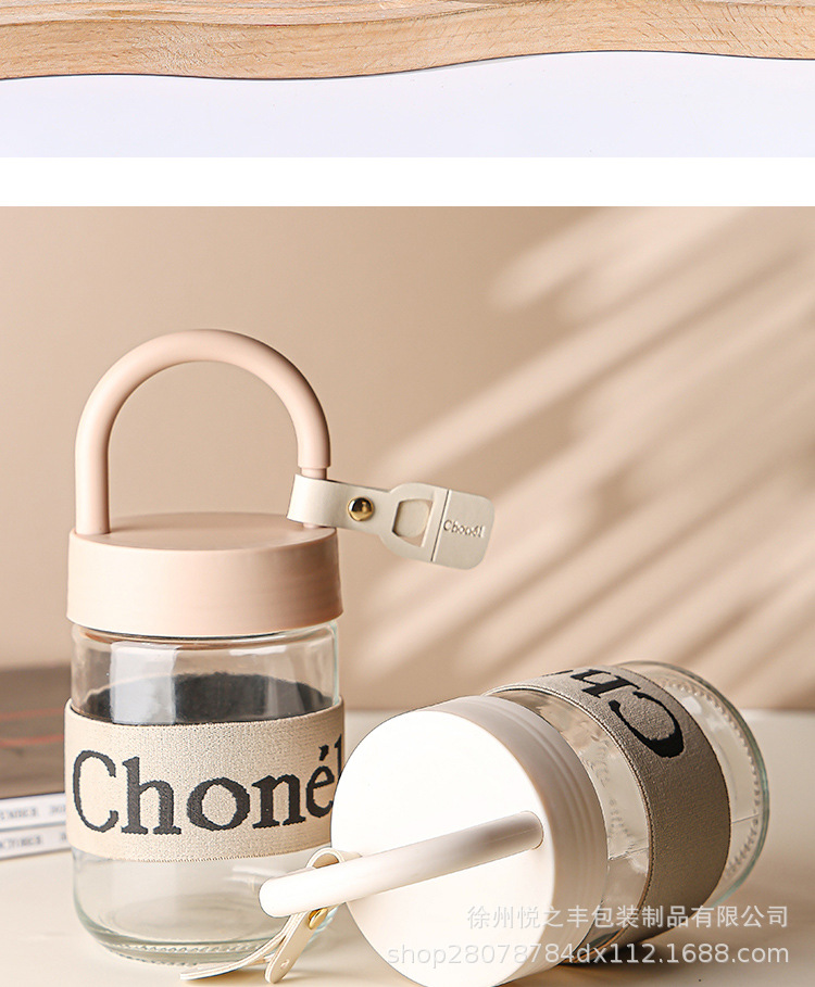 패션 레트로 걸스 인 샤넬 스타일 유리 워터 컵 봉인 안티 스케일 유리 핸들 휴대용 컵 선물 컵스토어 가기