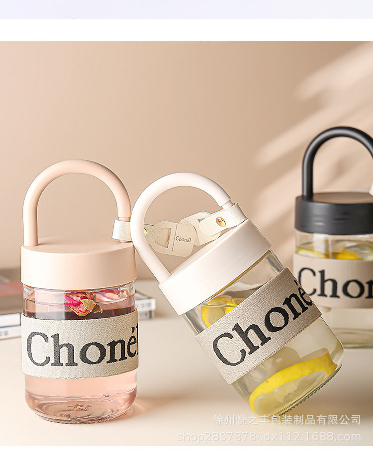 패션 레트로 걸스 인 샤넬 스타일 유리 워터 컵 봉인 안티 스케일 유리 핸들 휴대용 컵 선물 컵