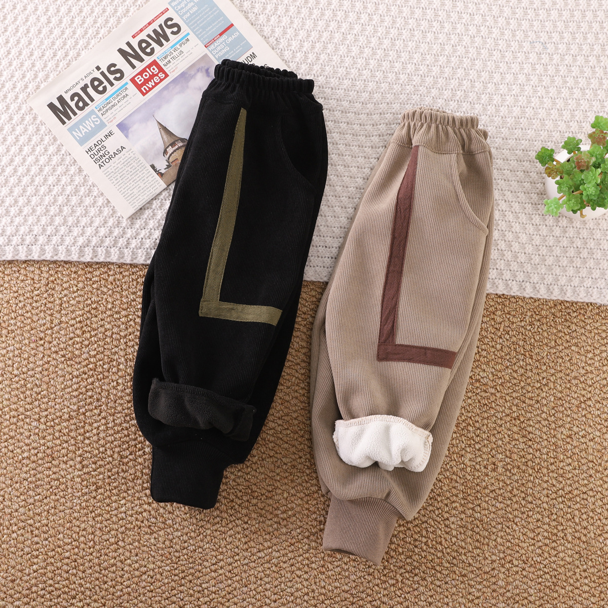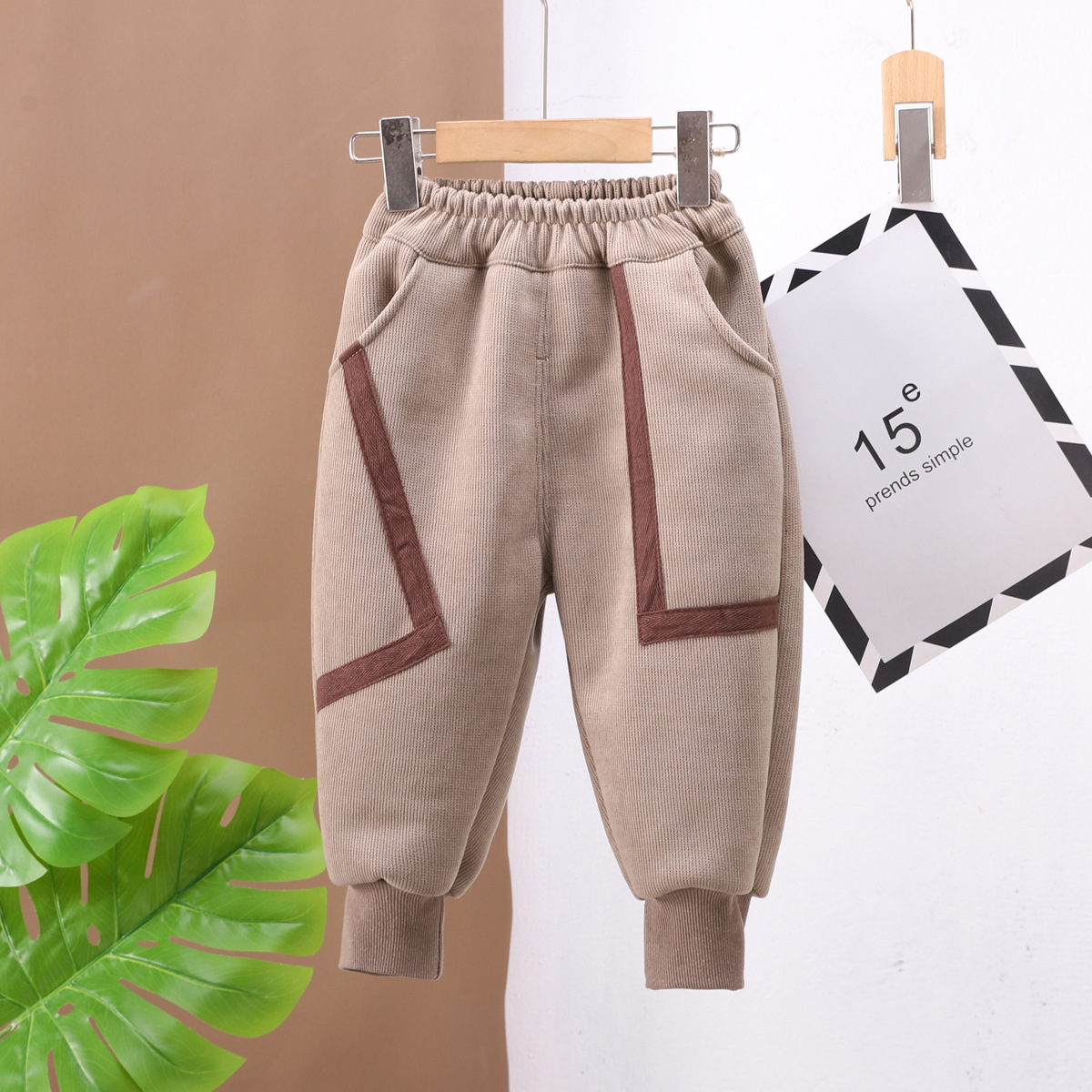 어린이 기모 스포츠 바지 소년 새로운 가을과 겨울 서양식 캐주얼 바지 아기의 외부 착용 따뜻한 다리 트렌디 바지