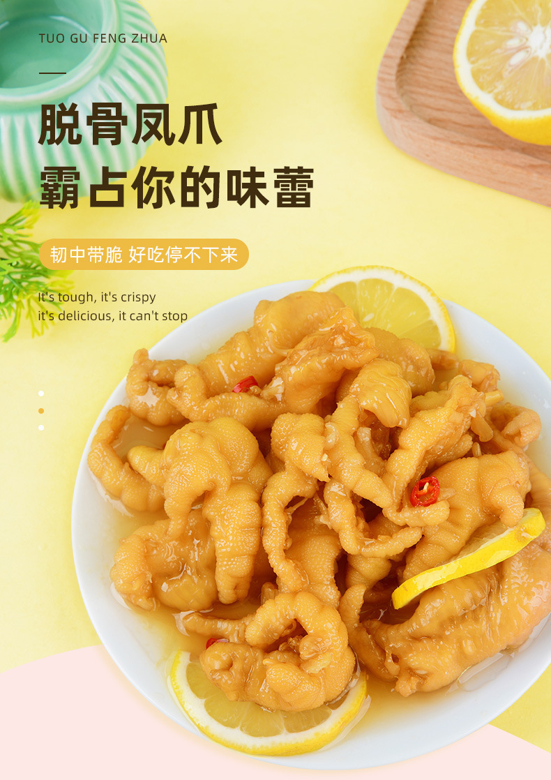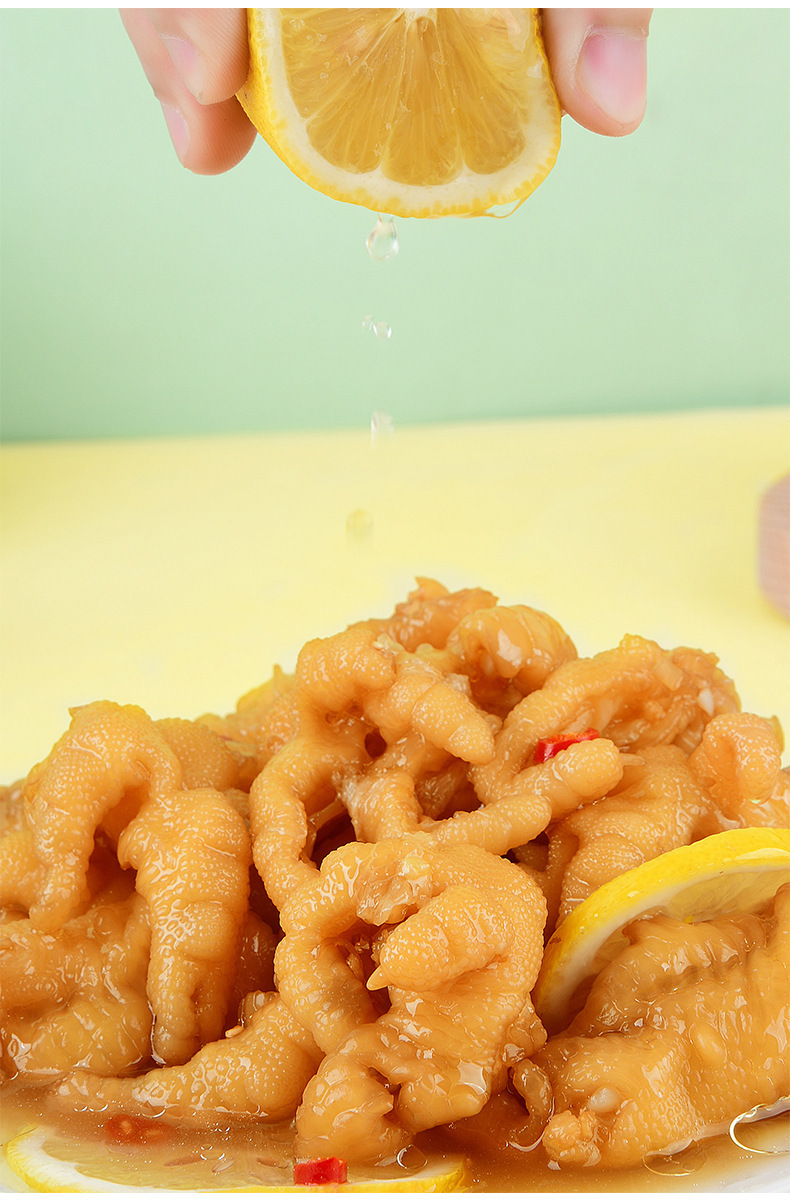YyAz 그물 붉은 뜨겁고 신 레몬 뼈없는 닭 발 뼈없는 절인 후추 닭 발 신선한 뼈없는 인스턴트 간식 매운 간식스토어 가기