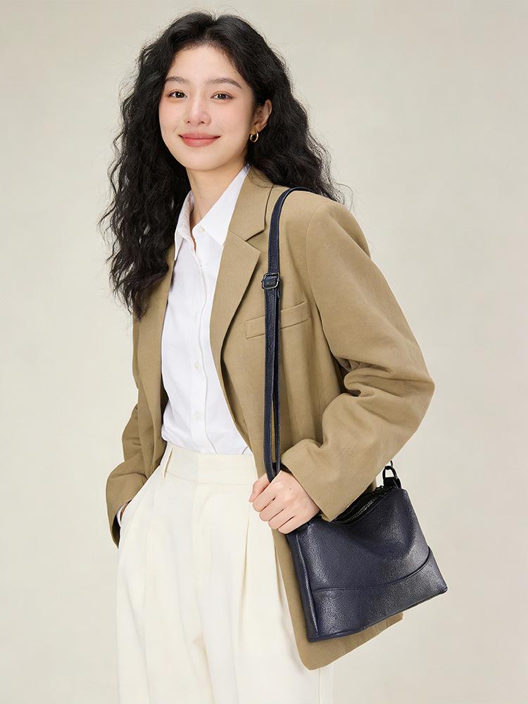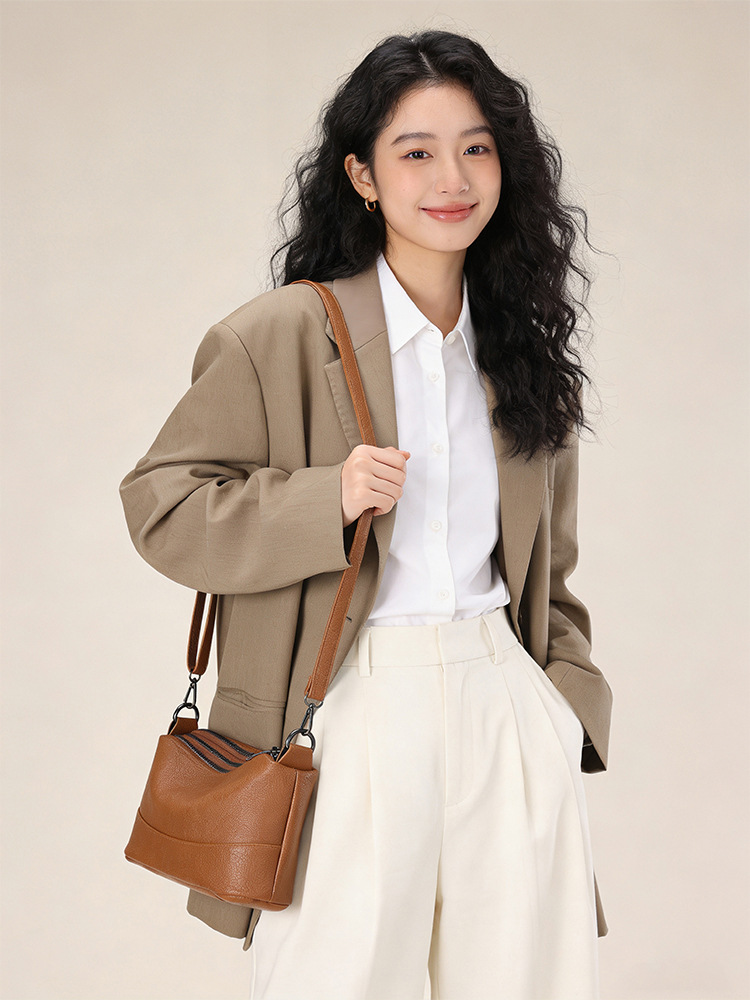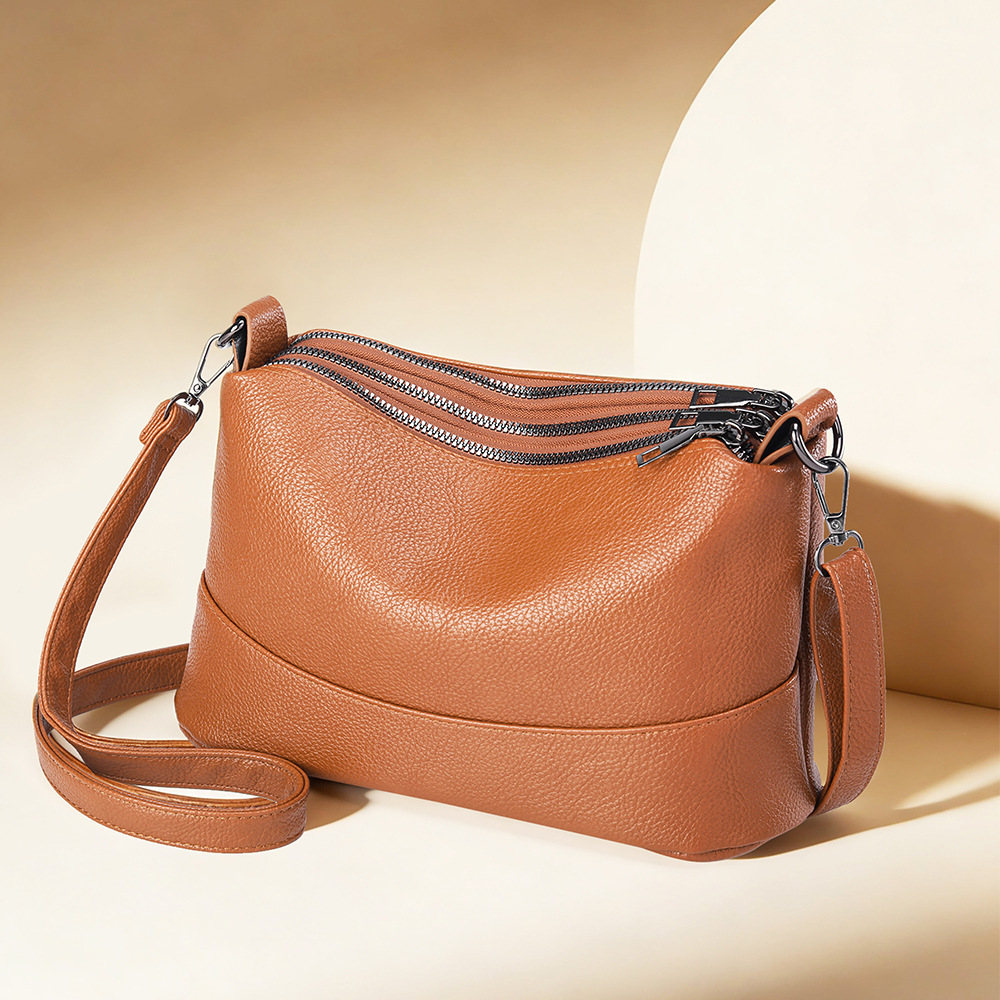 크로스보더 고급 여성용 가방 2026 신상 부드러운 가죽 다층 지퍼 가벼운 럭셔리 심플 대용량 숄더/크로스백