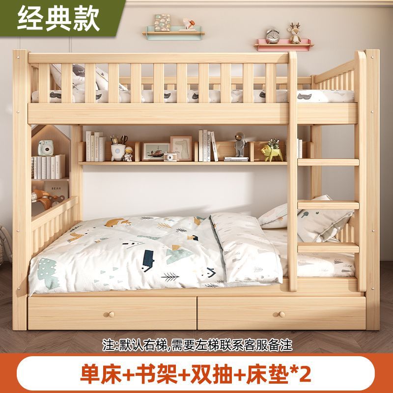 상하 침대 이층 침대 단단한 나무 두꺼운 가정 어린이 침대 높고 낮은 어머니 침대 성인 더블 침대 기숙사 새로운 스타일스토어 가기