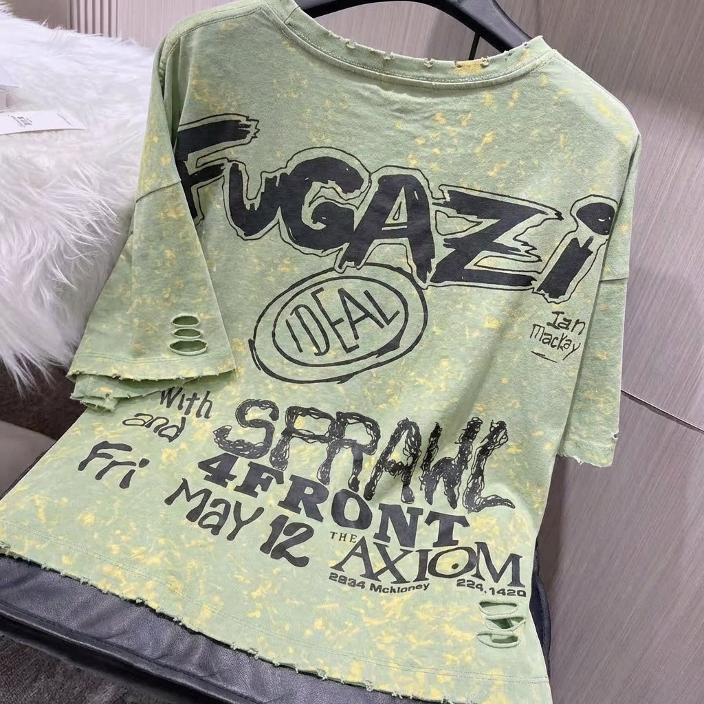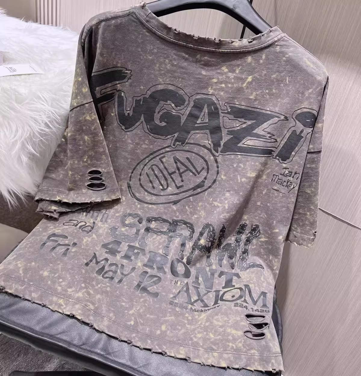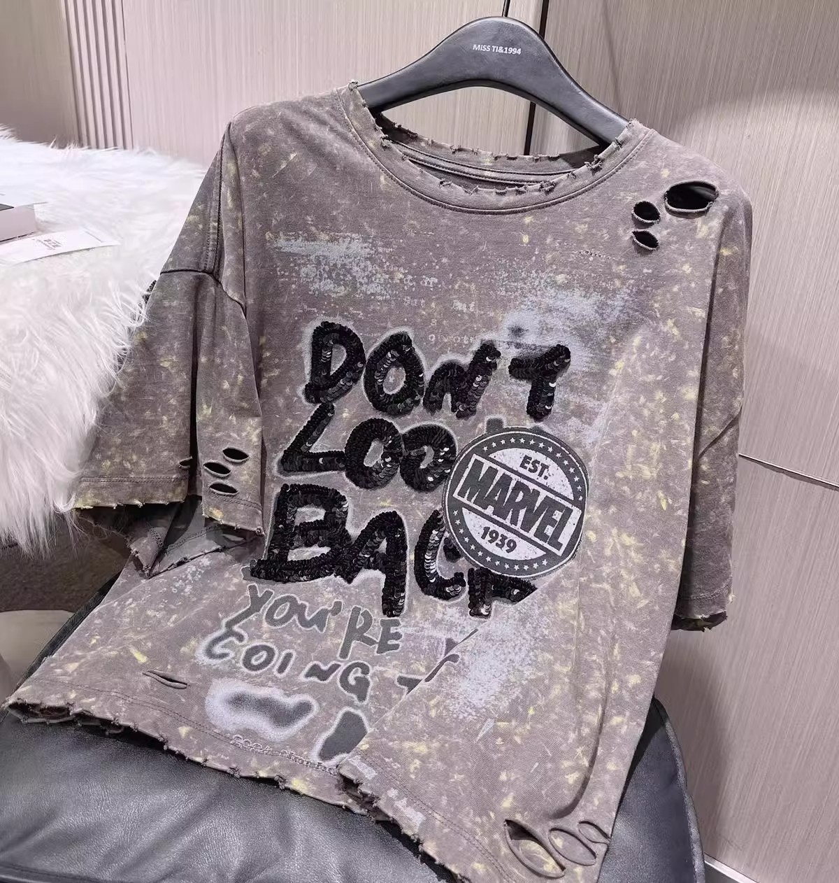 슈퍼 플러스 사이즈 1.00 kg-150.00 kg 통통녀 여름 디자인 센스 리핑 프린트 리퀸 반팔 티셔츠 여성용 루즈 라운드 넥 탑
