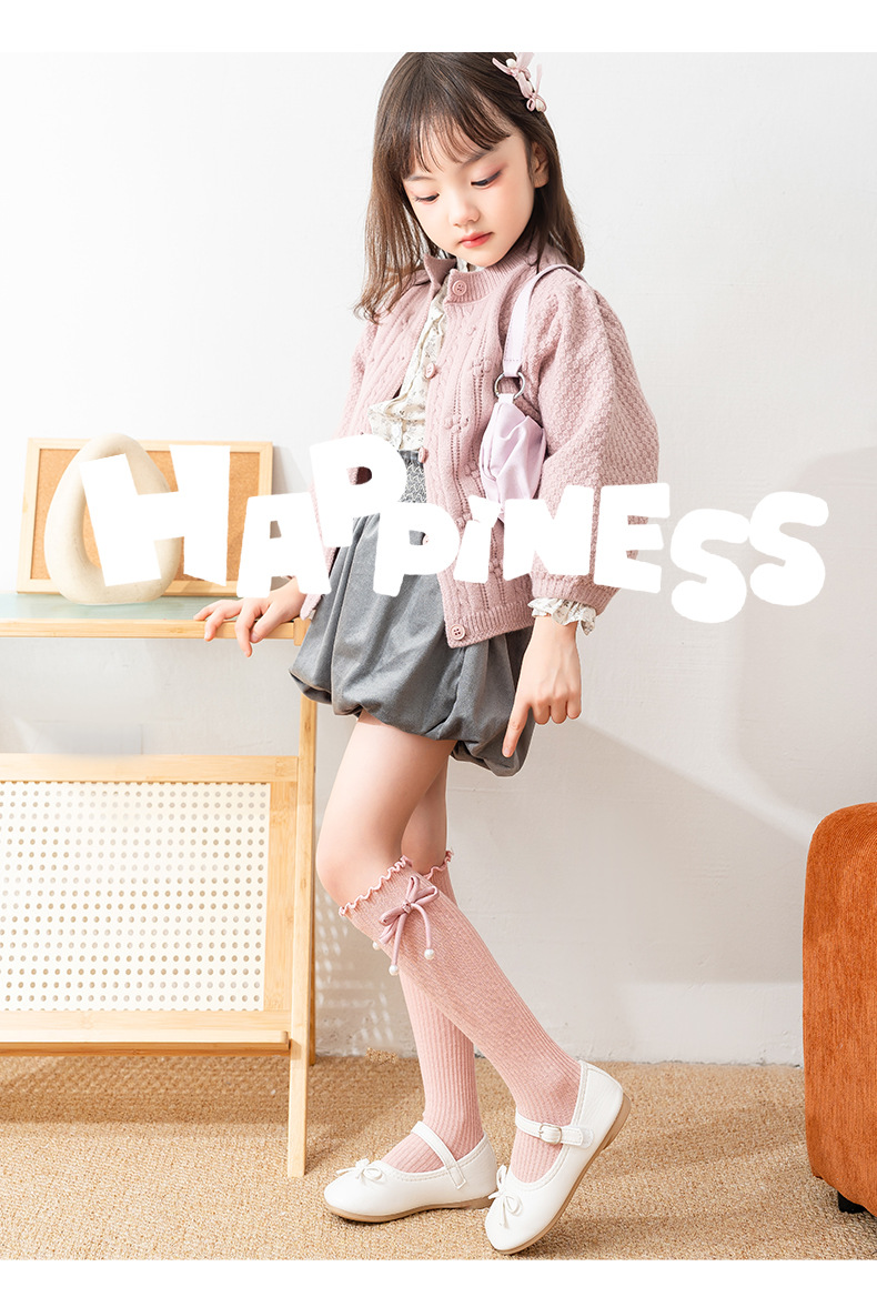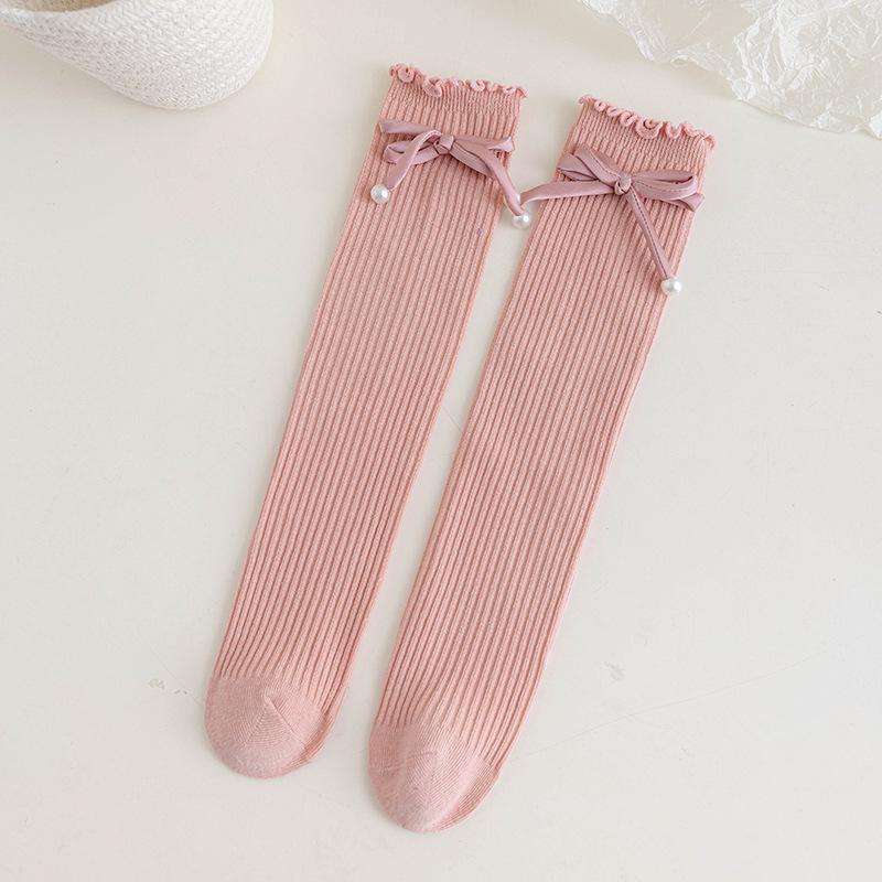 어린이 긴 양말 봄과 가을 소녀 긴 양말 공주 아기 학생 진주 활 귀여운 커프 양말