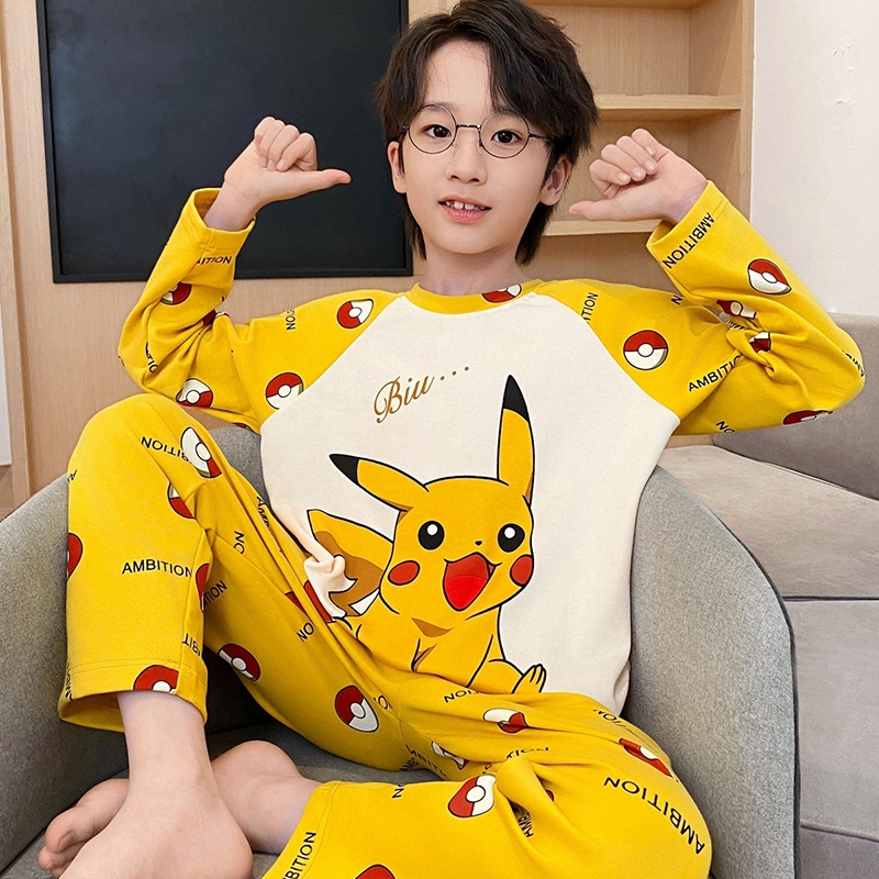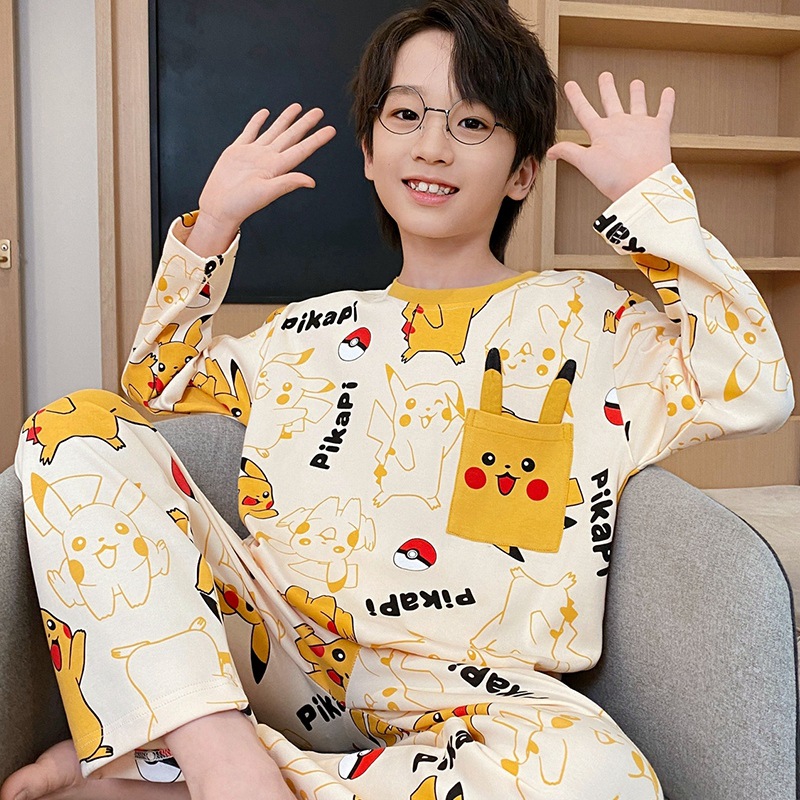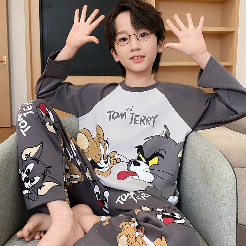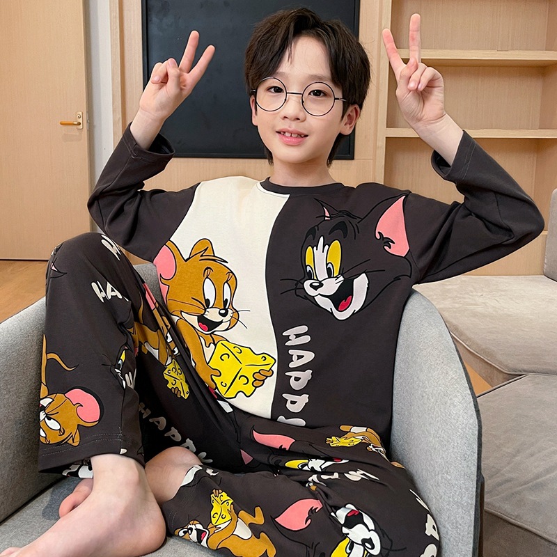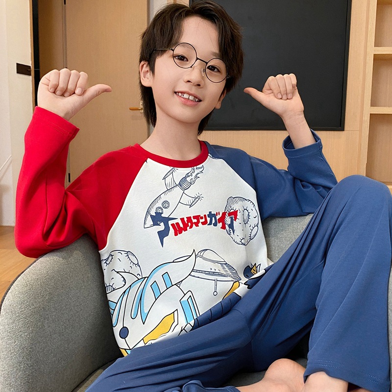 봄과 가을 어린이 잠옷 소년의 순면 만화 참깨 거리 중 큰 어린이 집 옷 긴 소매 얇은 학생 세트