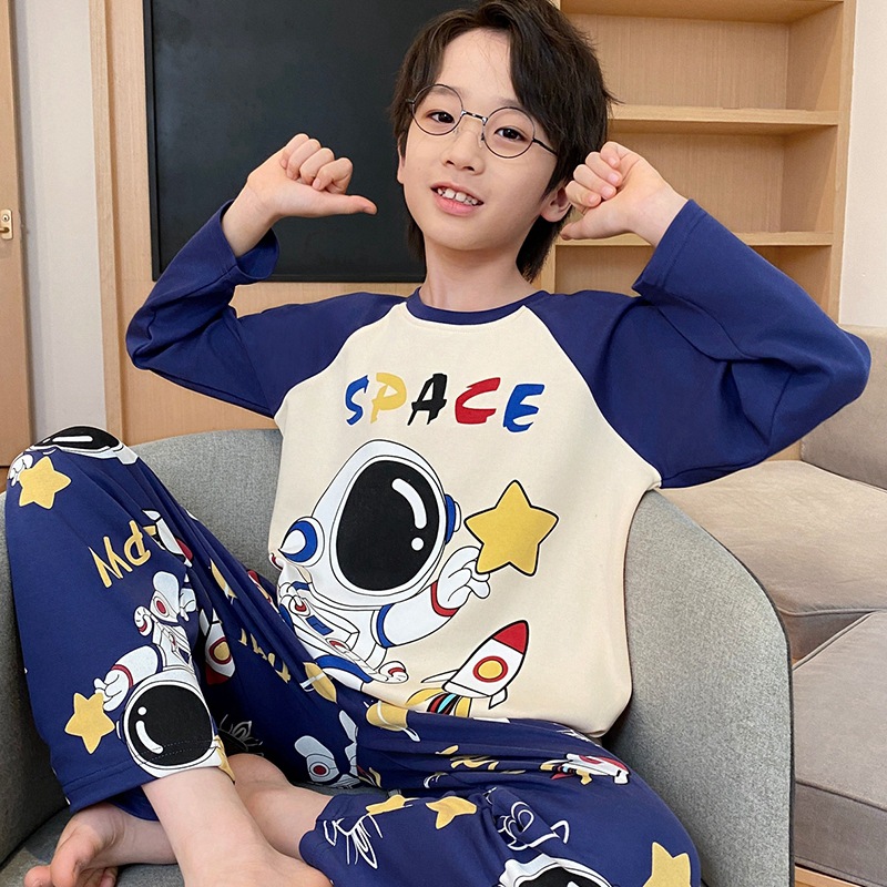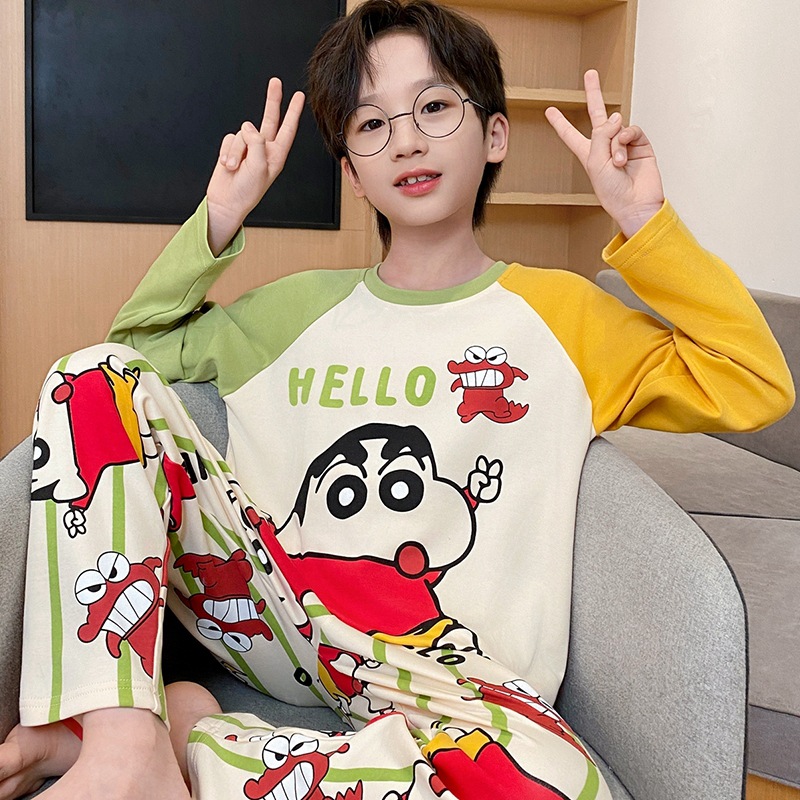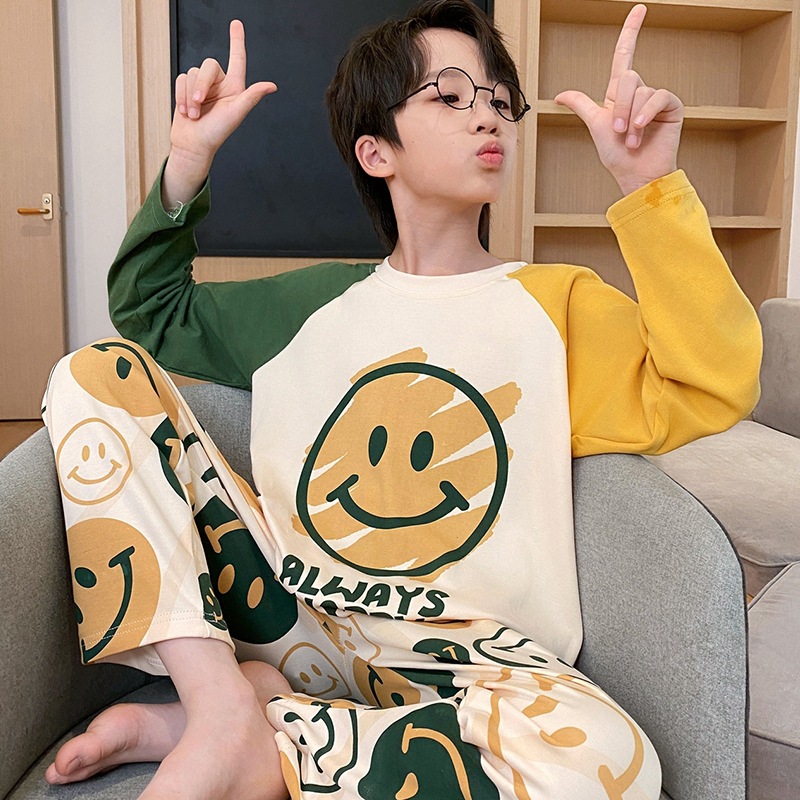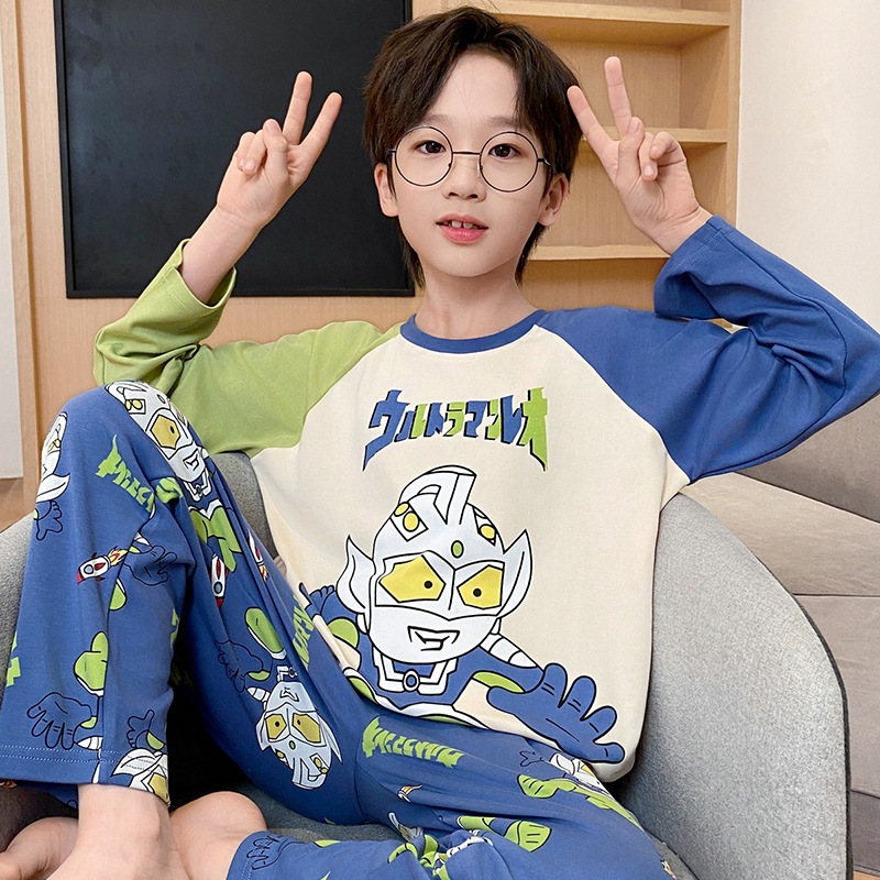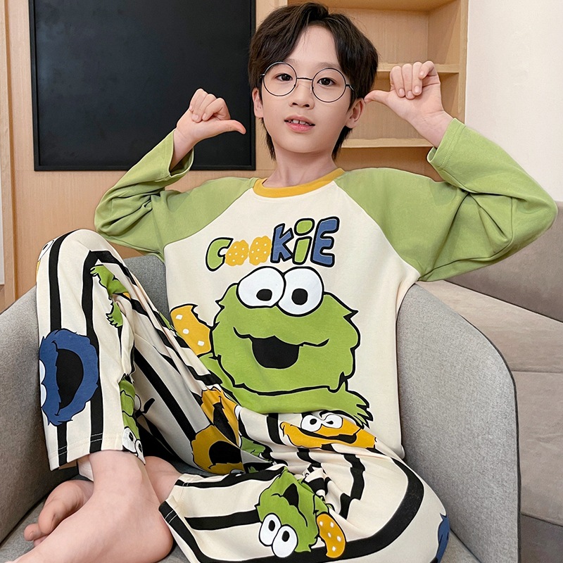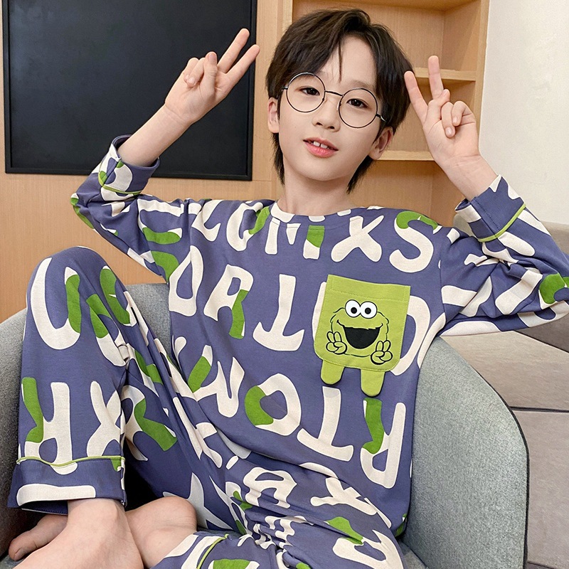 봄과 가을 어린이 잠옷 소년의 순면 만화 참깨 거리 중 큰 어린이 집 옷 긴 소매 얇은 학생 세트스토어 가기