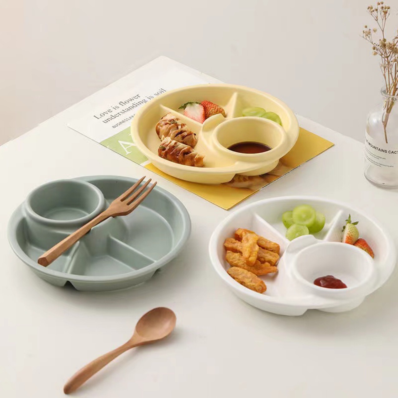 국경을 넘는 신형 체중 감량 식판 크림 스타일 정량 식판 아침 식사 정량 분할 식기 어린이 보조 식품 식판스토어 가기