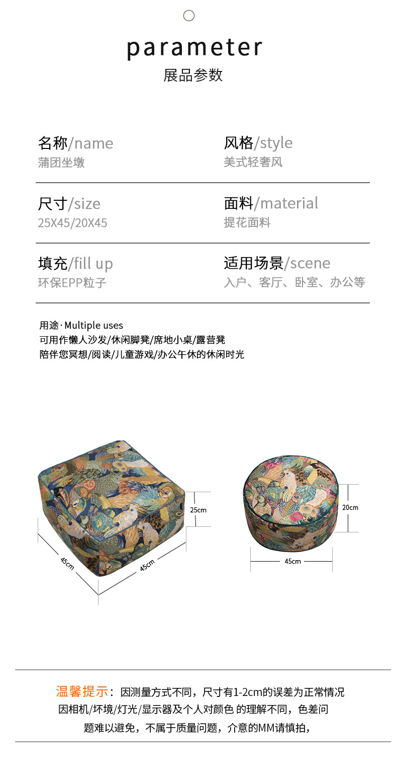 아메리칸 스타일 정글 시리즈 어린이 앉아 부두 광장 이불 쿠션 게으른 사람 소파 거실 쿠션 페달 홈스테이 로우 스툴