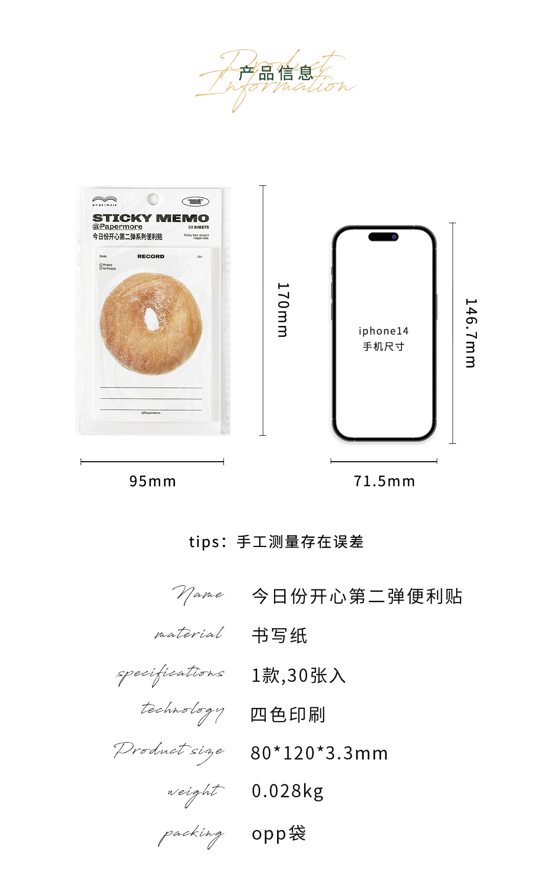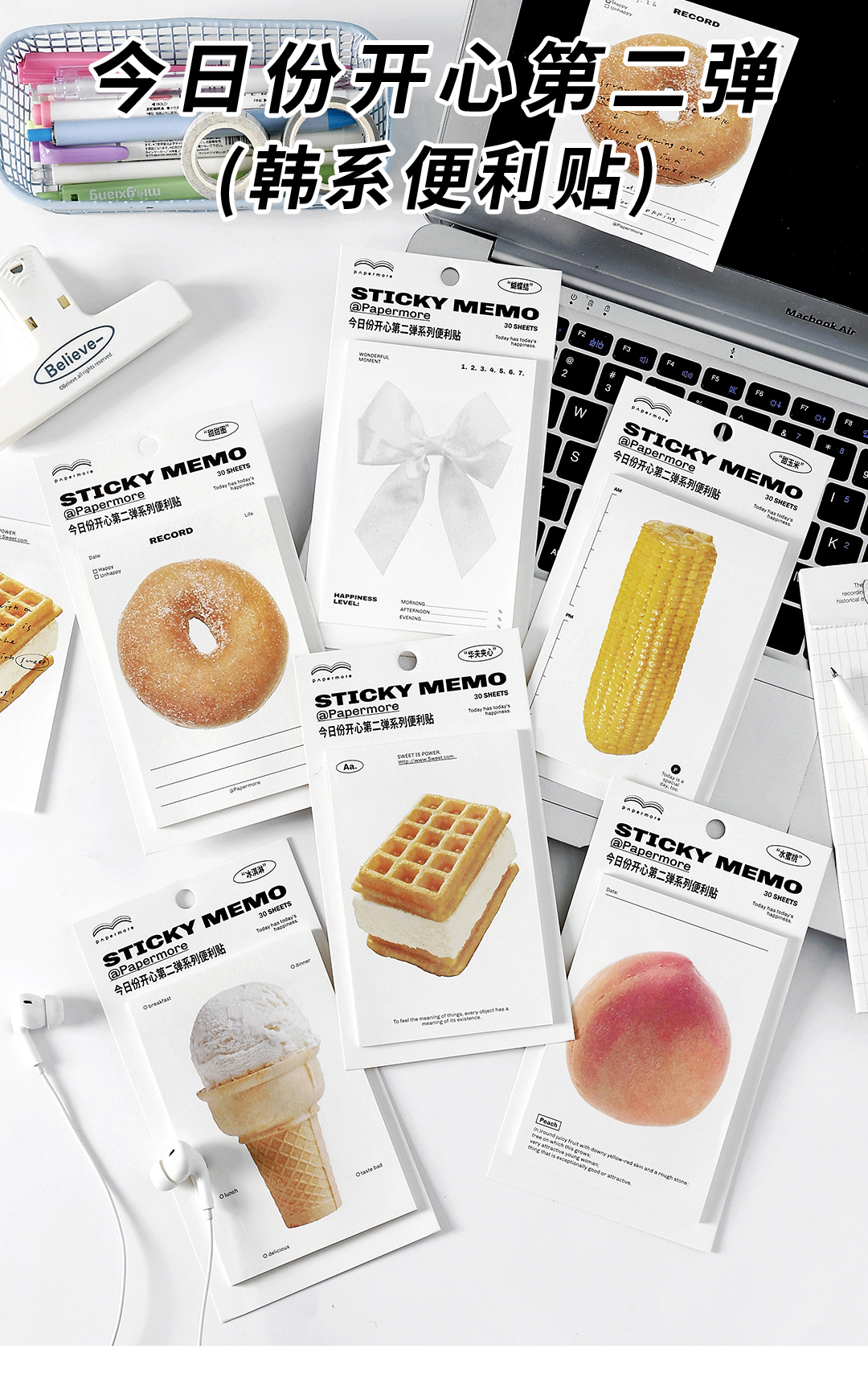 페이퍼모어 포스트잇 오늘의 행복 두 번 시리즈 디저트 소재 메모지 다용도 포스트잇