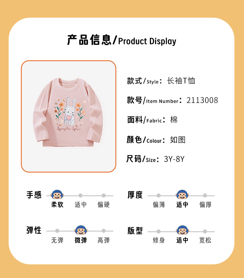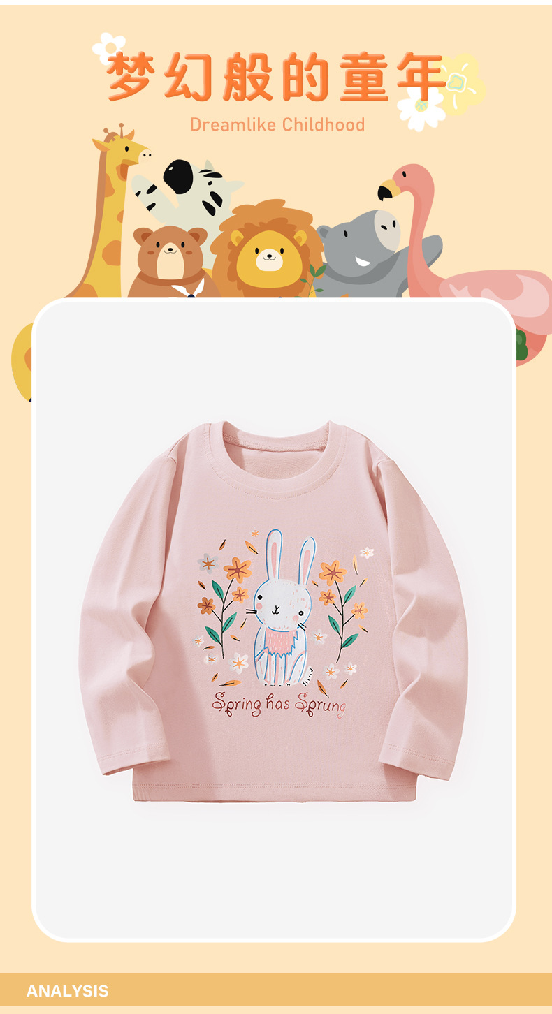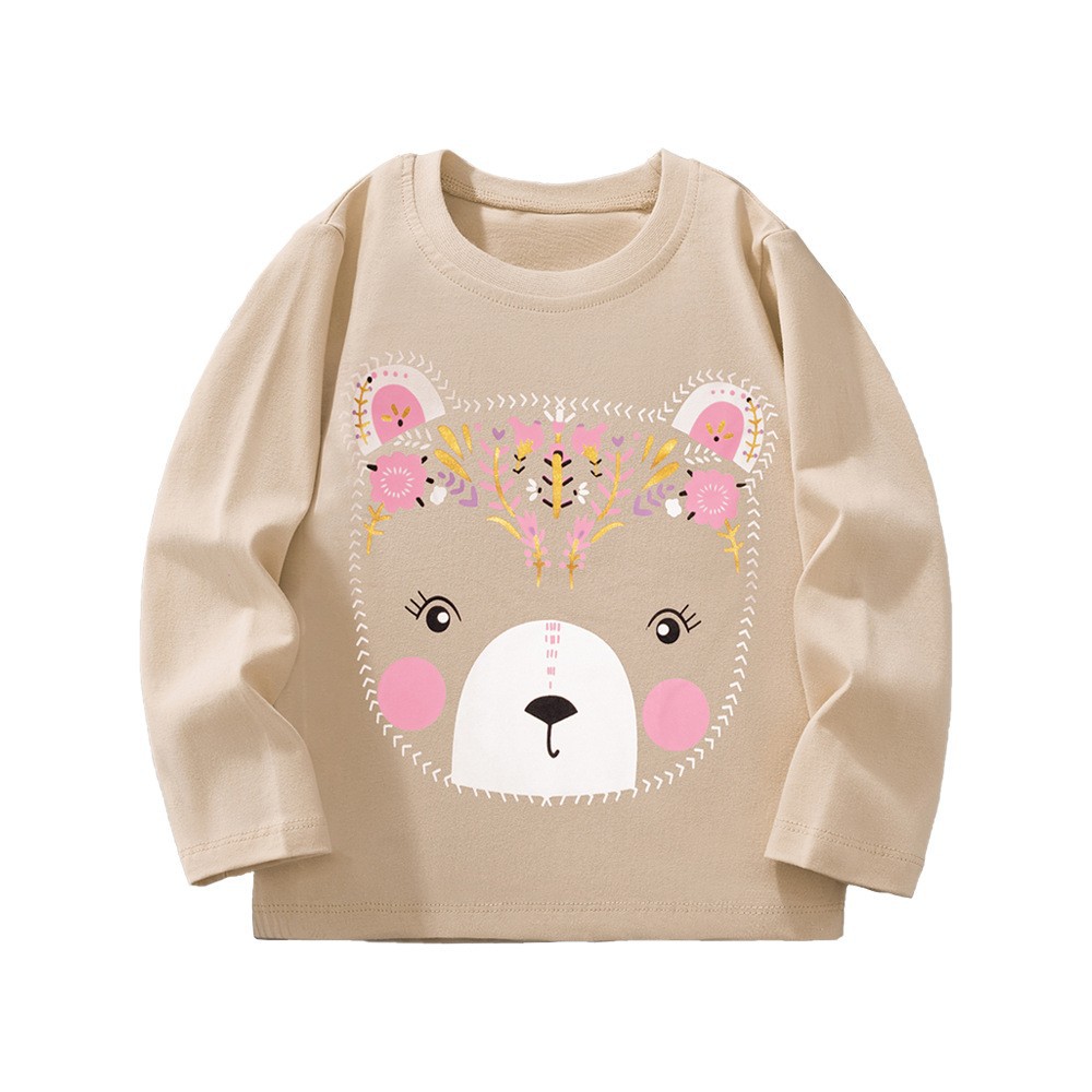 2025년 봄 가을 여아용 긴팔 면 티셔츠 아동복 만화 동물 캐주얼 유아복 도매스토어 가기