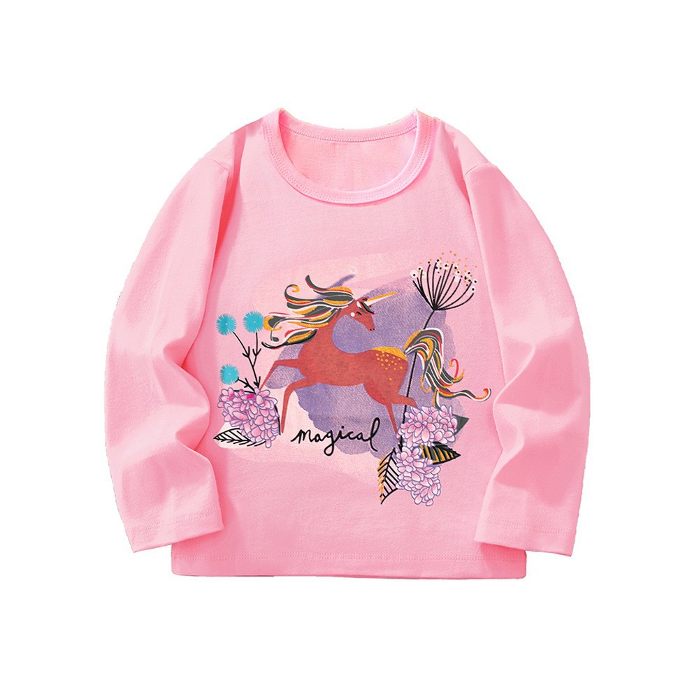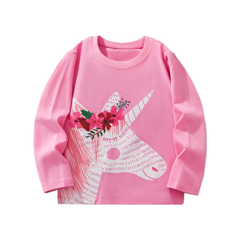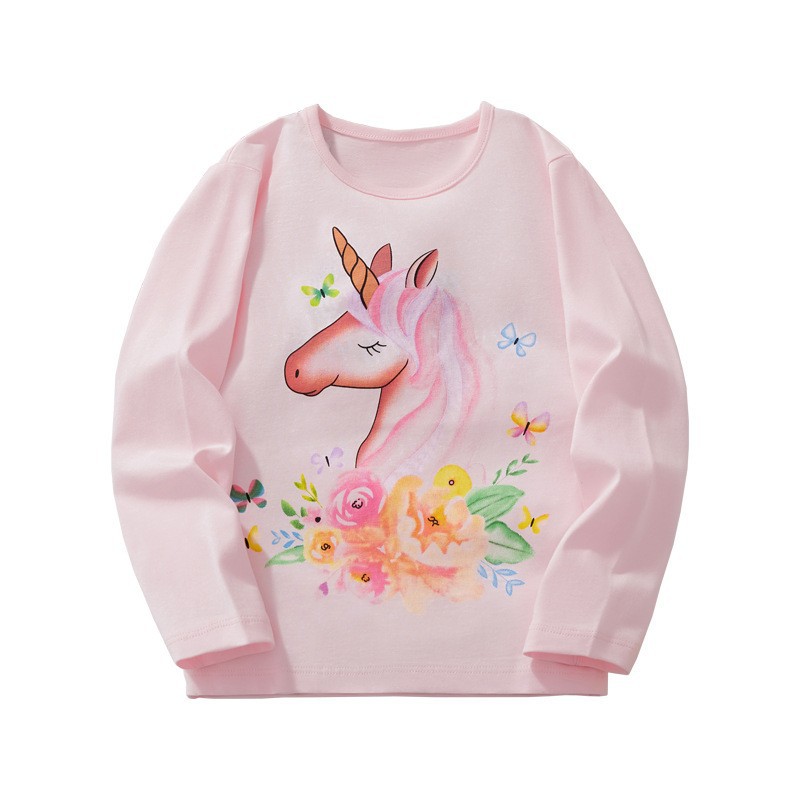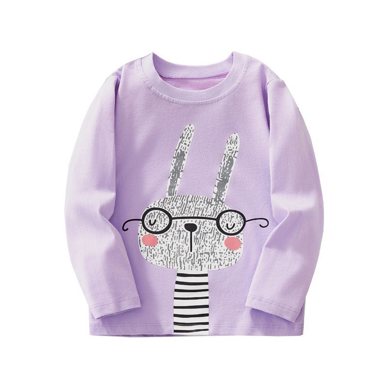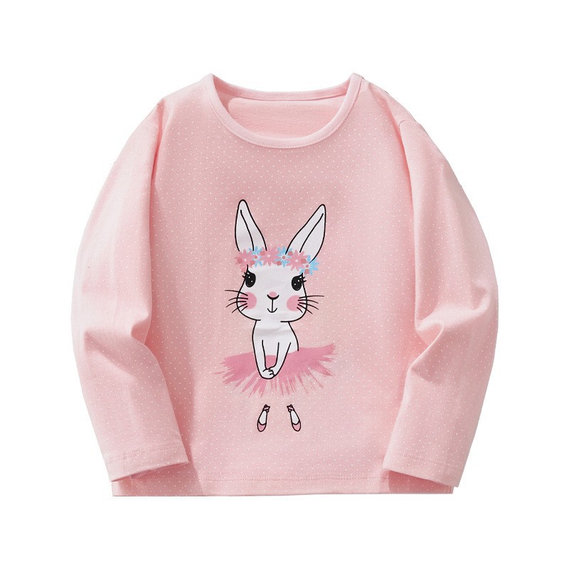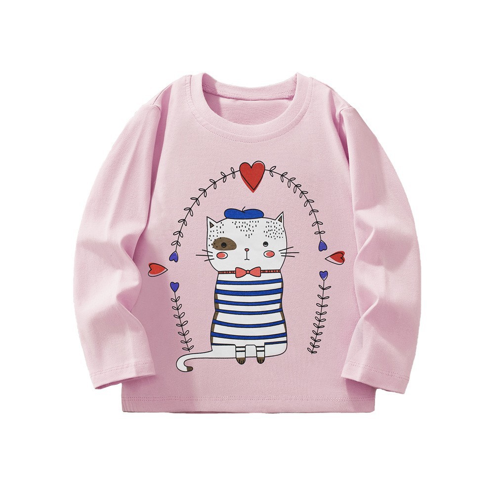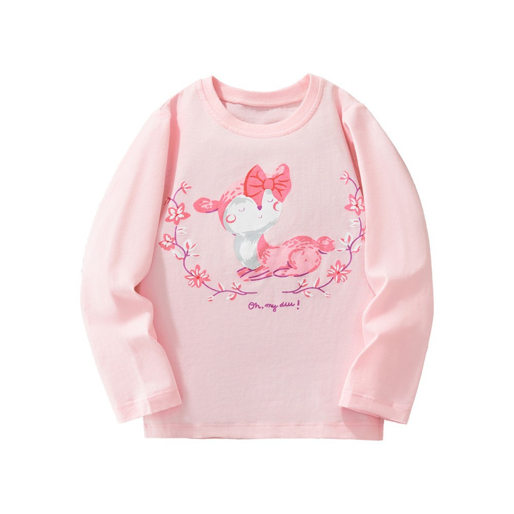 2025년 봄 가을 여아용 긴팔 면 티셔츠 아동복 만화 동물 캐주얼 유아복 도매