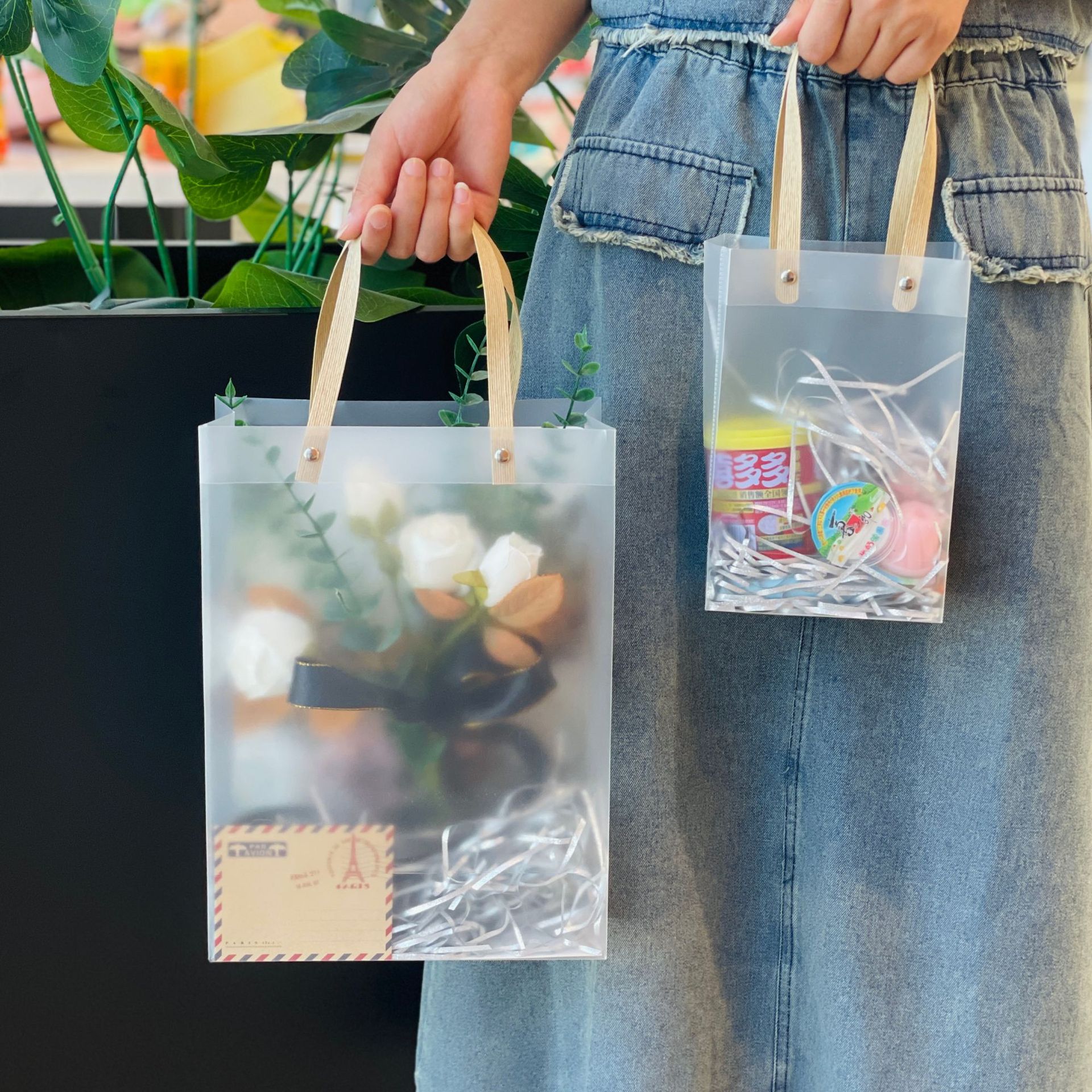 Pp 프로스티드 투명 선물 가방 pvc 핸드백 화장품 웨딩 사탕 선물 포장 가방 비닐 봉지 로고스토어 가기