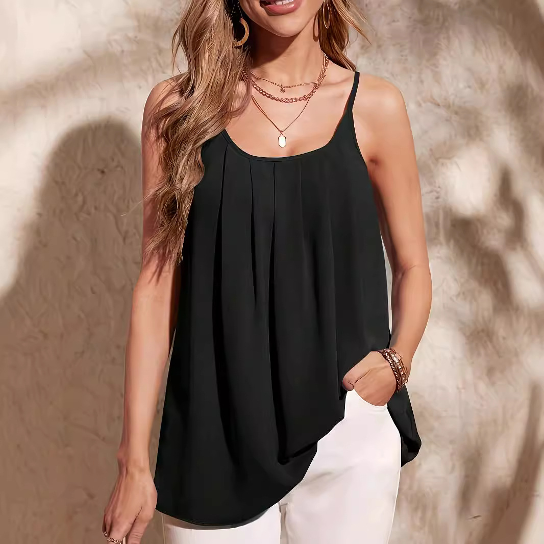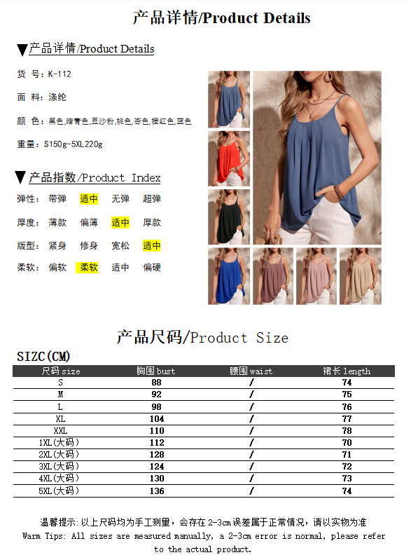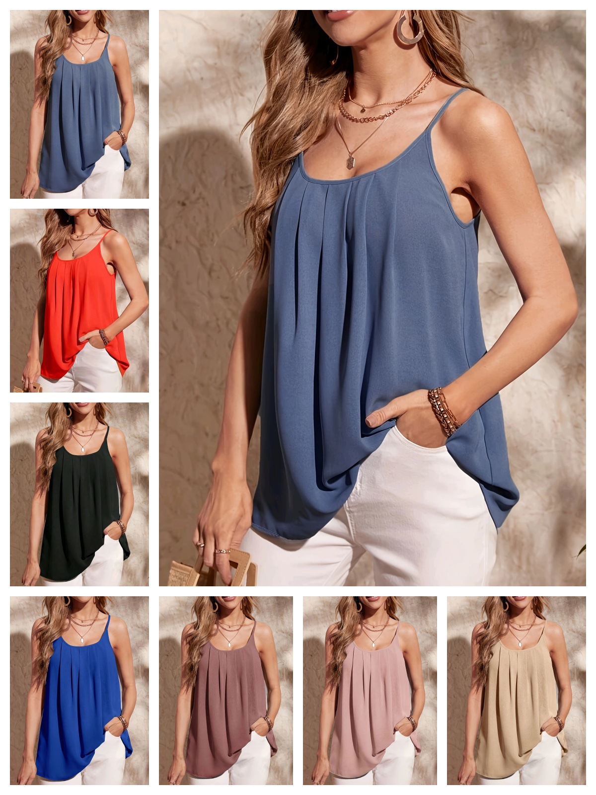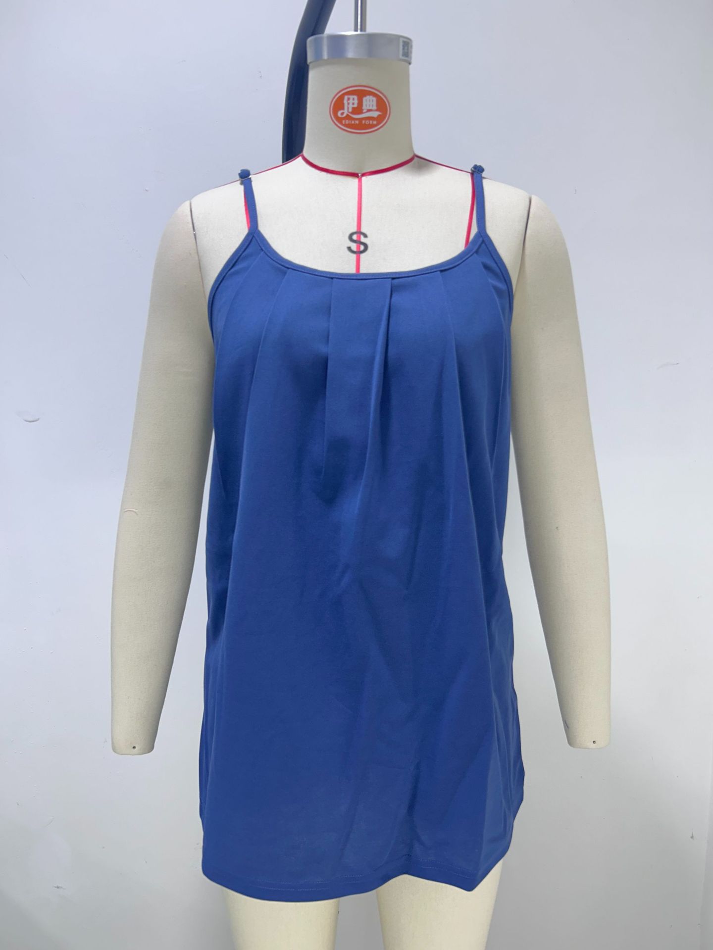 2026 크로스보더 유럽 및 미국 아마존 플리츠 조절형 멜빵 원피스 루즈핏 캐주얼 솔리드 컬러 민소매 베스트