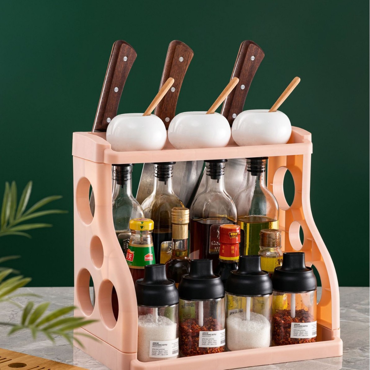 가정용 더블 레이어 주방 보관 랙 플라스틱 다기능 주방 스파이스 랙 주방 용품 보관 랙