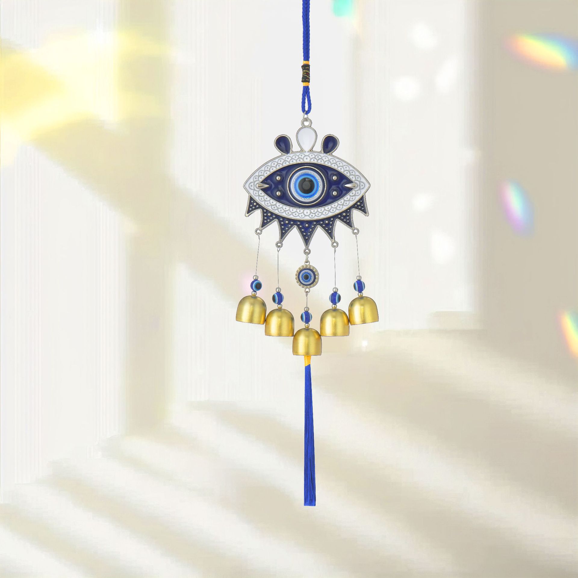 국경 악마의 눈 바람 차임 블루 메탈 벨 눈 바람 차임 펜던트 야외 매달려 장식 홈 인테리어 도매