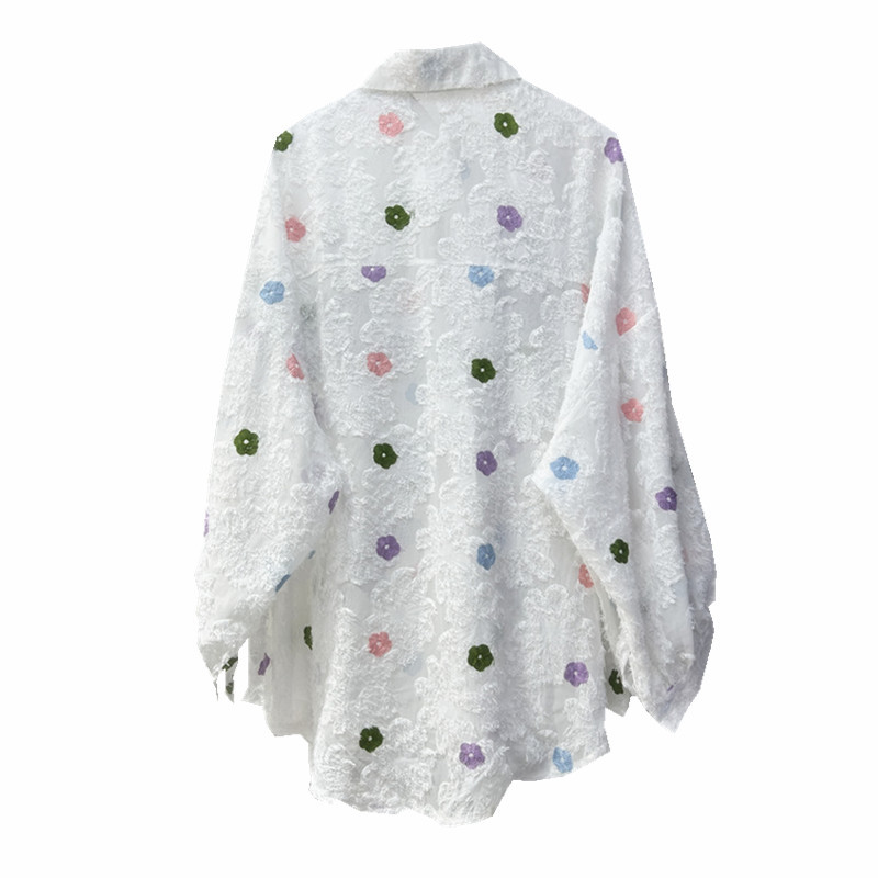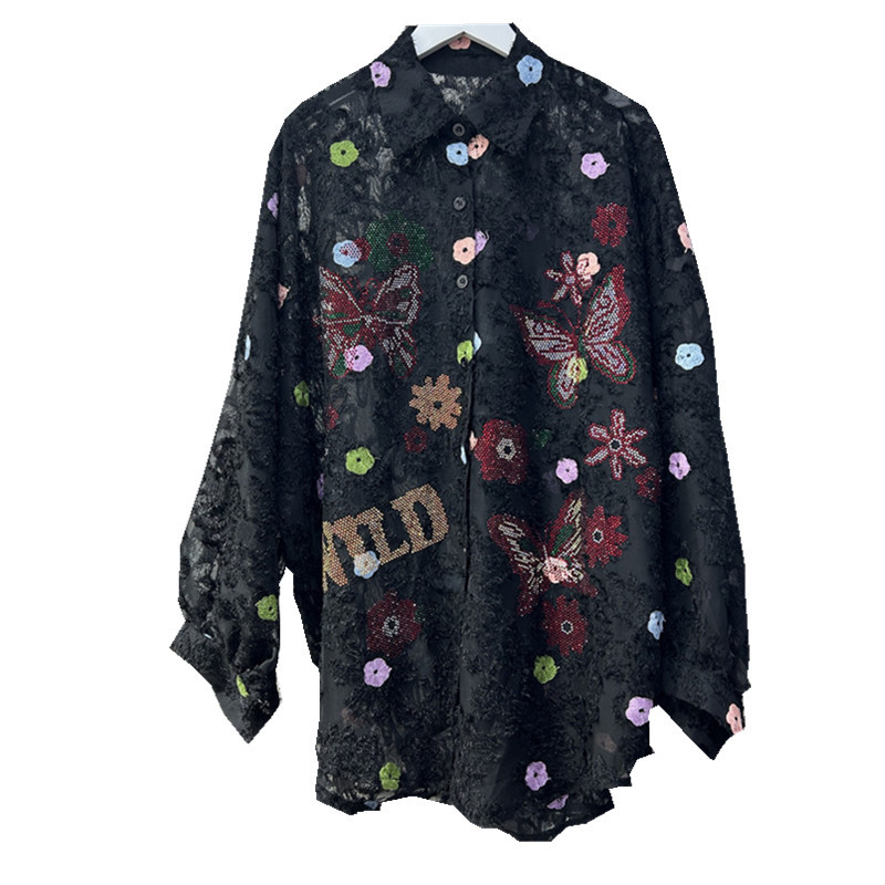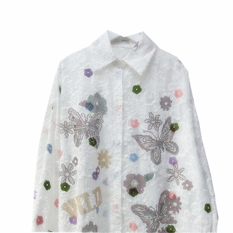 가을 2024 새로운 중공업 뜨거운 시추 자수 긴 소매 잠금 느슨한 귀여운 나이 감소 캐주얼 패션 여성 셔츠