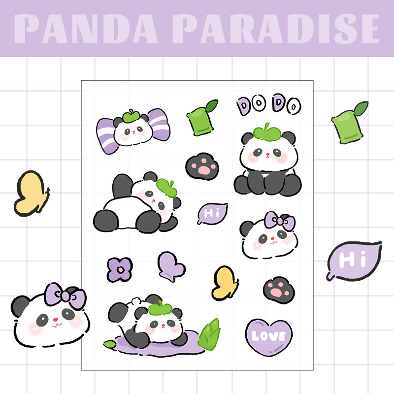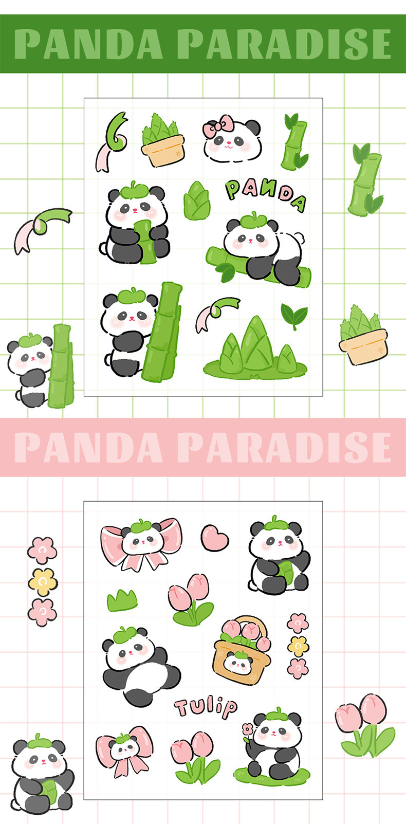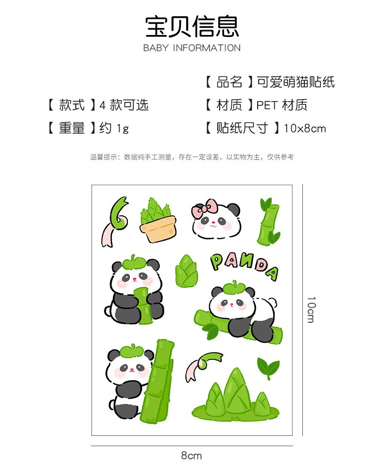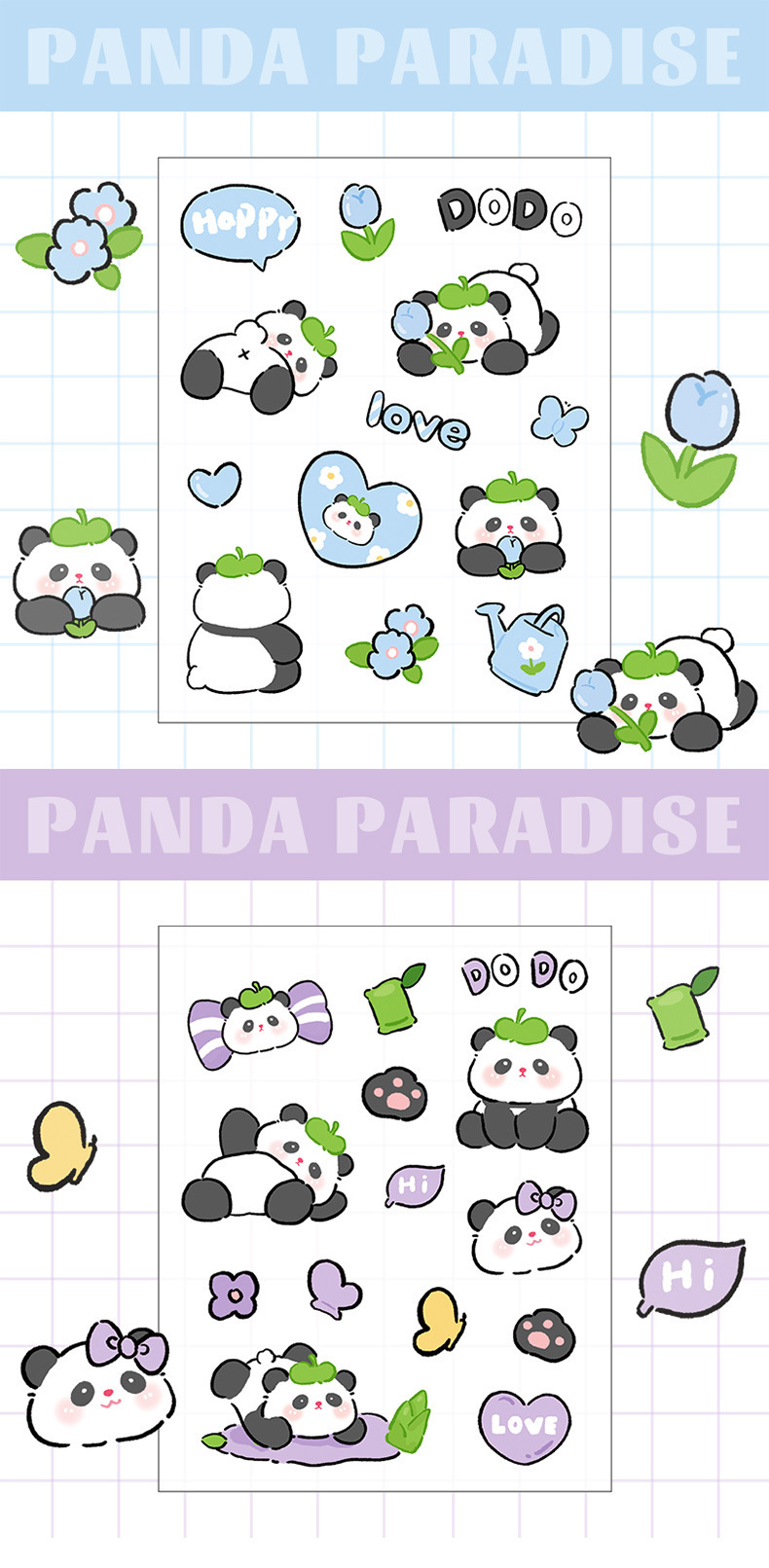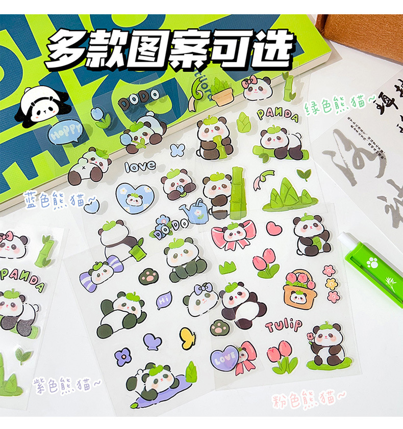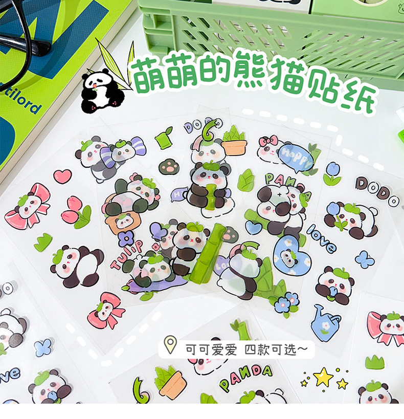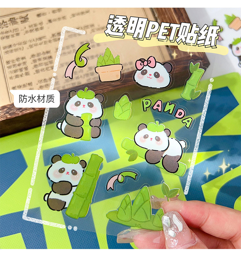 귀여운 팬더 스티커 만화 PET 스티커 어린이 DIY goo 카드 손 계정 스티커 방수 컵 휴대 전화 스티커 도매