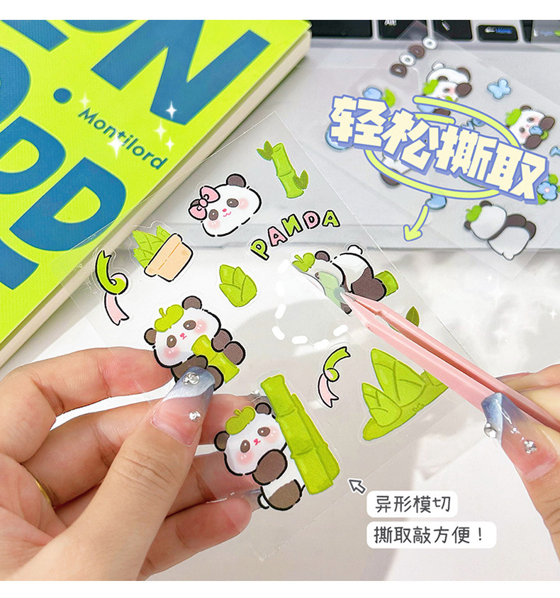 귀여운 팬더 스티커 만화 PET 스티커 어린이 DIY goo 카드 손 계정 스티커 방수 컵 휴대 전화 스티커 도매스토어 가기