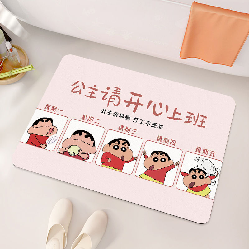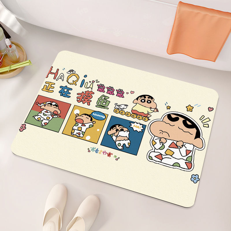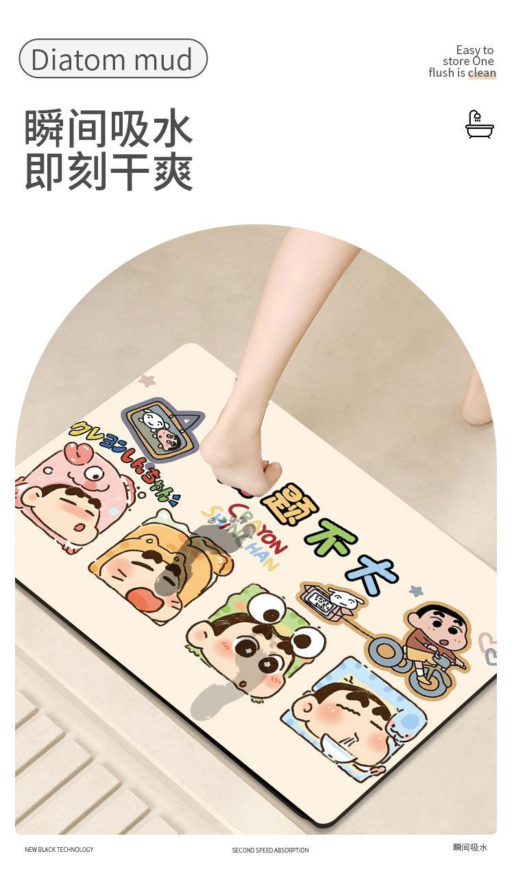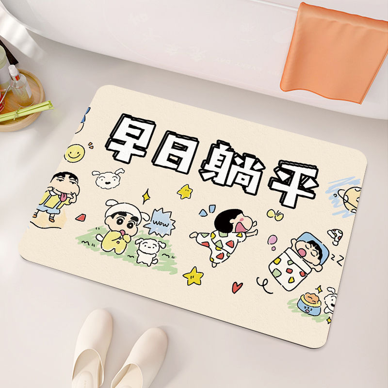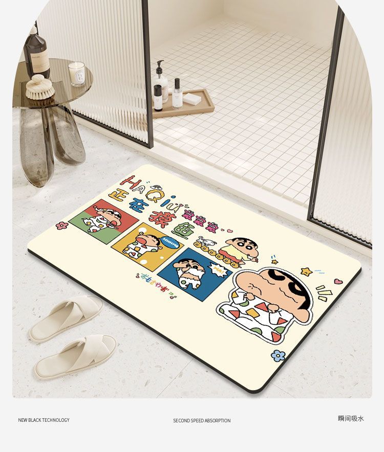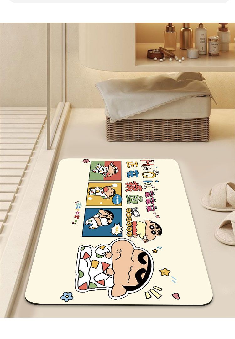 크레용 신짱 욕실 바닥 매트, 욕실 흡수성, 속건성, 미끄럼 방지 매트, 관리가 쉬운 규조토 진흙, 드롭 배송 만화스토어 가기