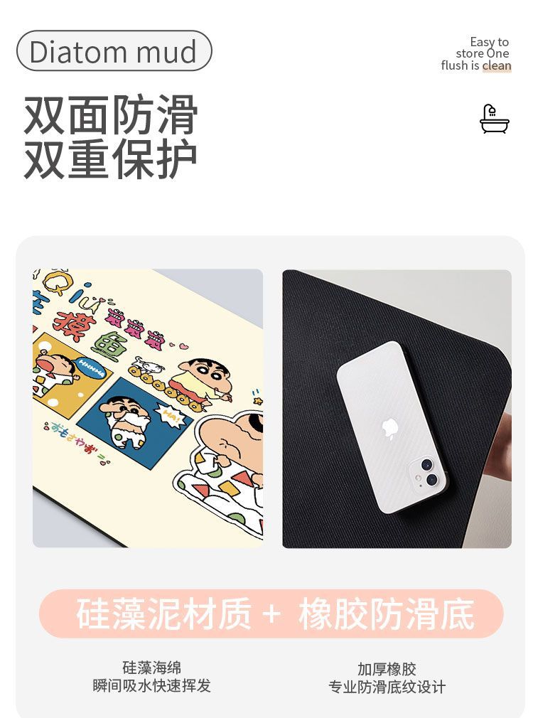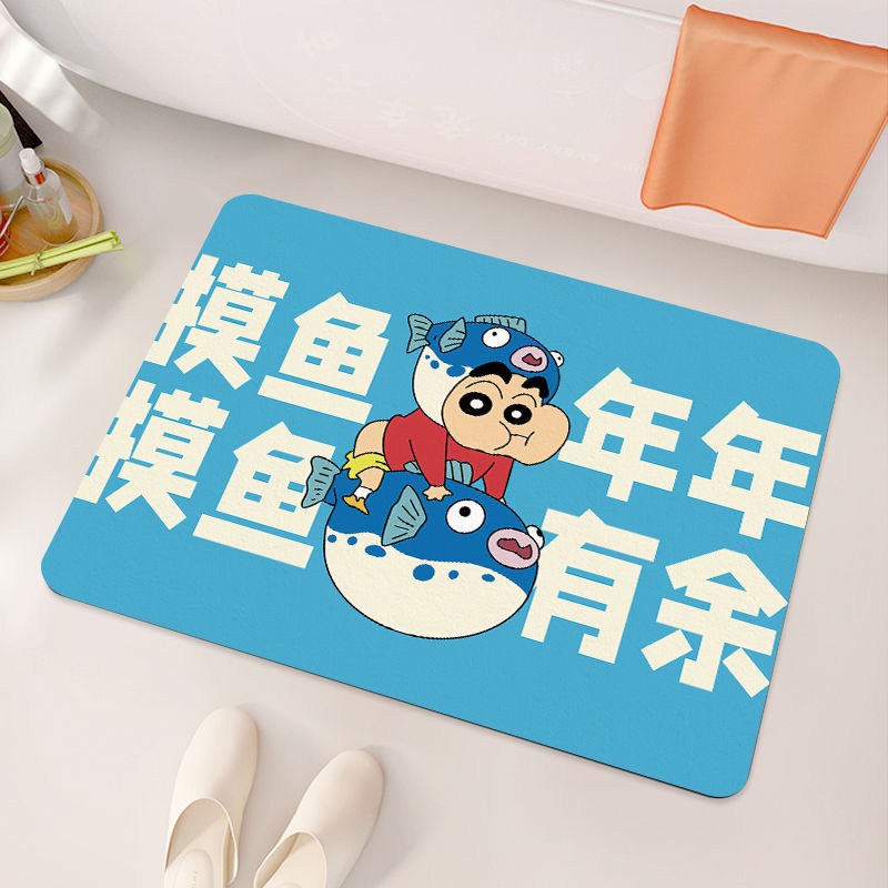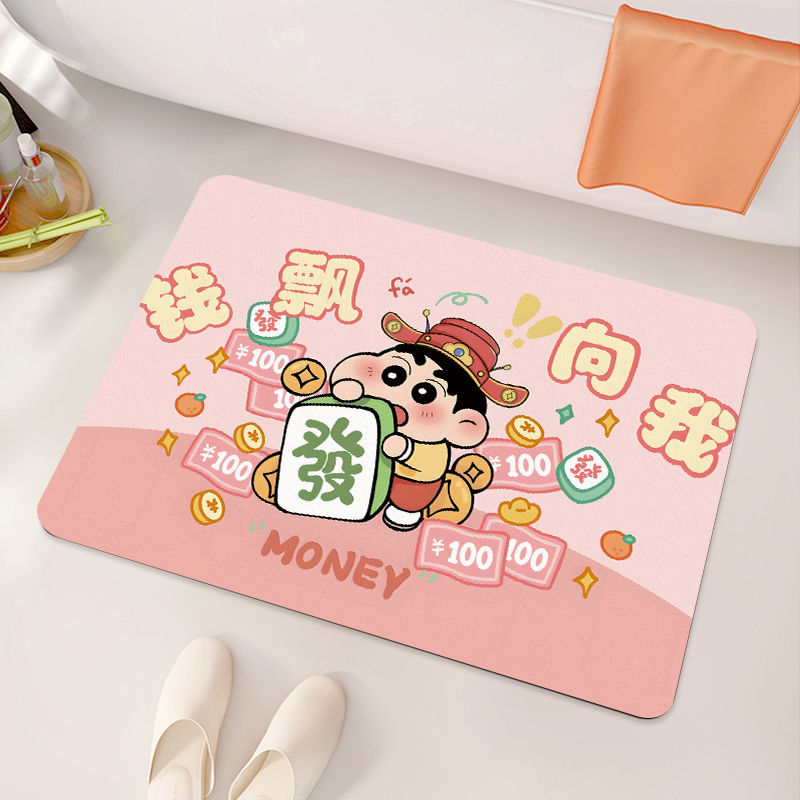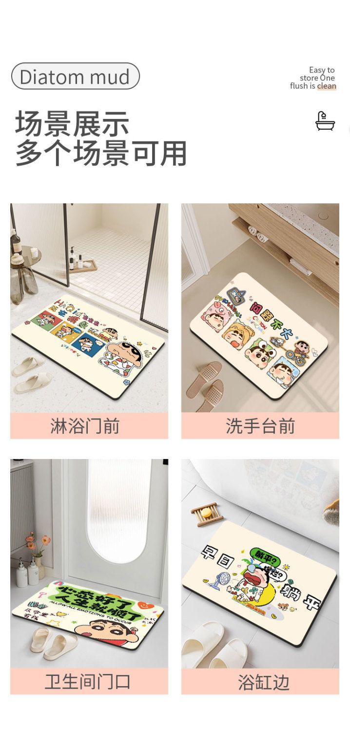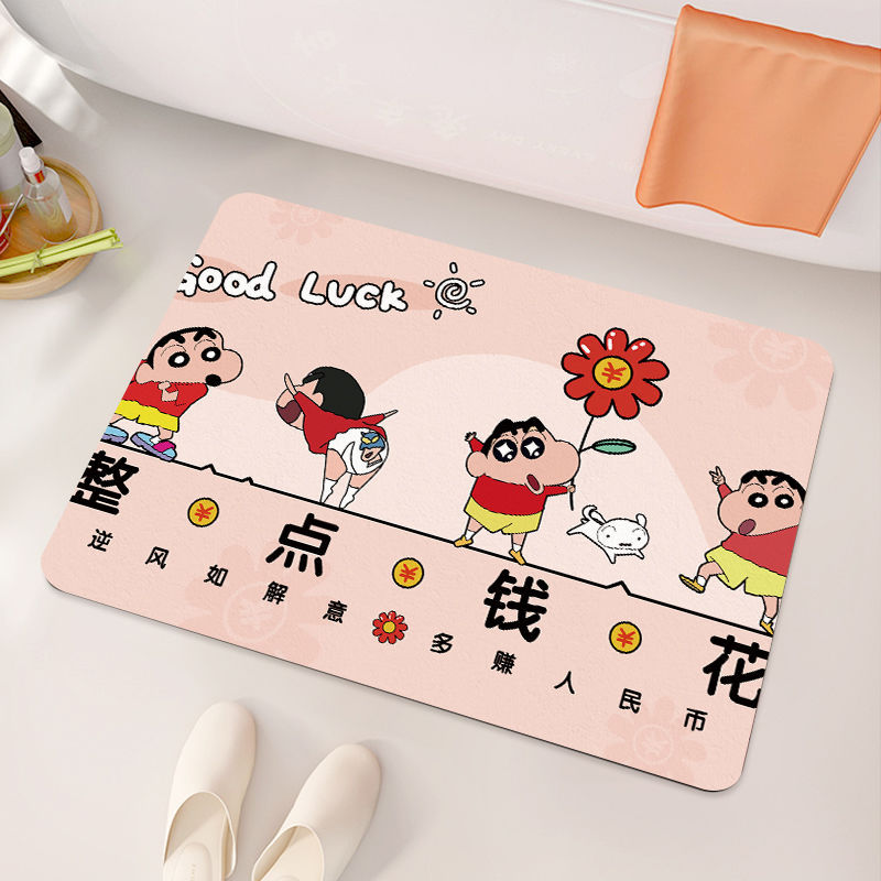 크레용 신짱 욕실 바닥 매트, 욕실 흡수성, 속건성, 미끄럼 방지 매트, 관리가 쉬운 규조토 진흙, 드롭 배송 만화스토어 가기