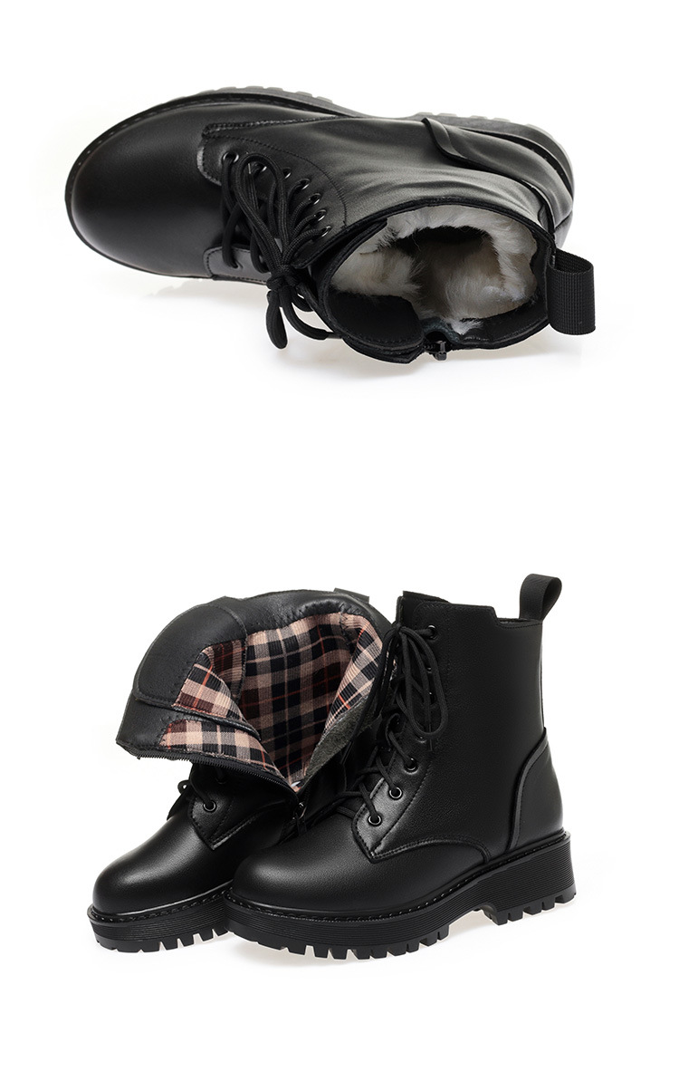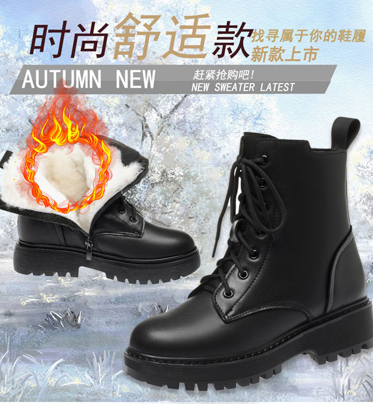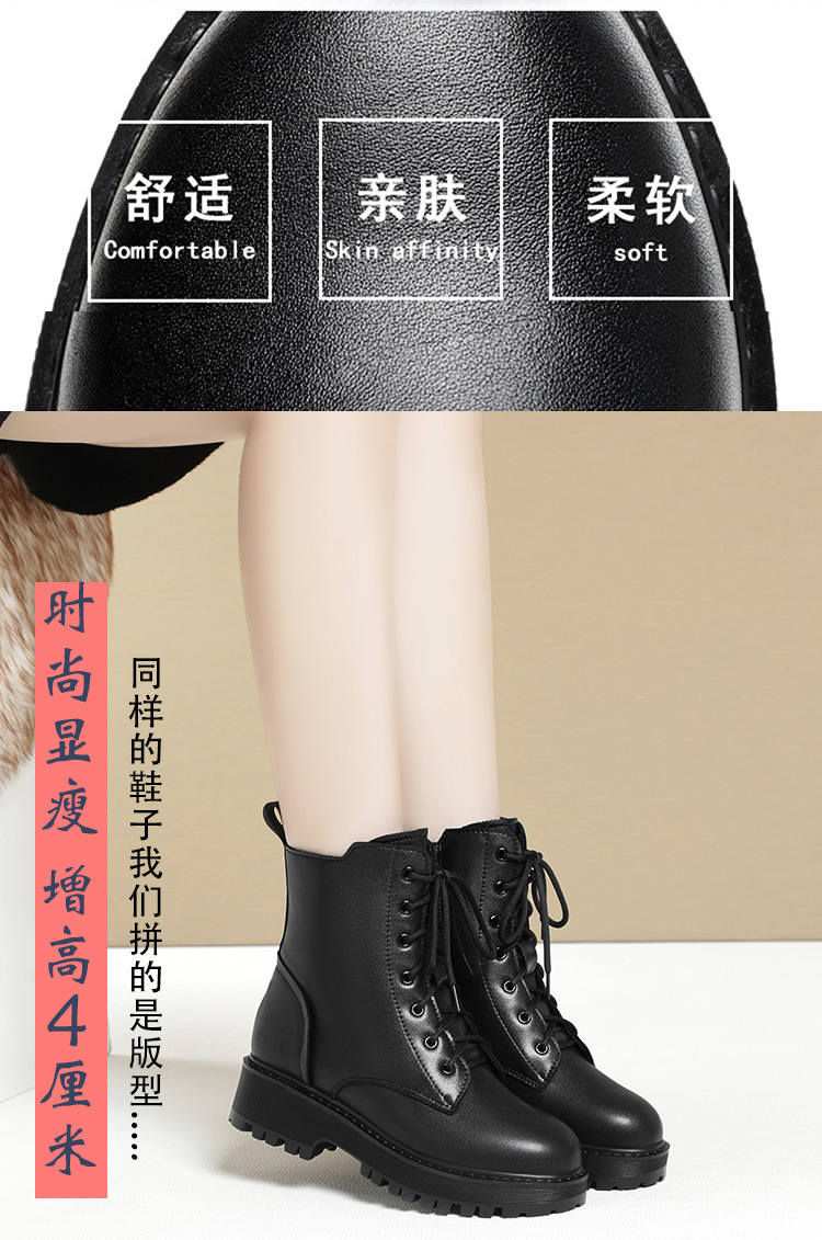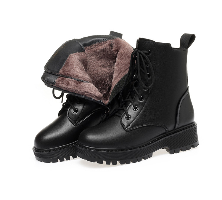 가을과 겨울 가죽 마틴 부츠 여성용 플랫 기모 두꺼워졌습니다. 2024 새로운 로우 힐 코튼 슈즈 코튼 부츠스토어 가기