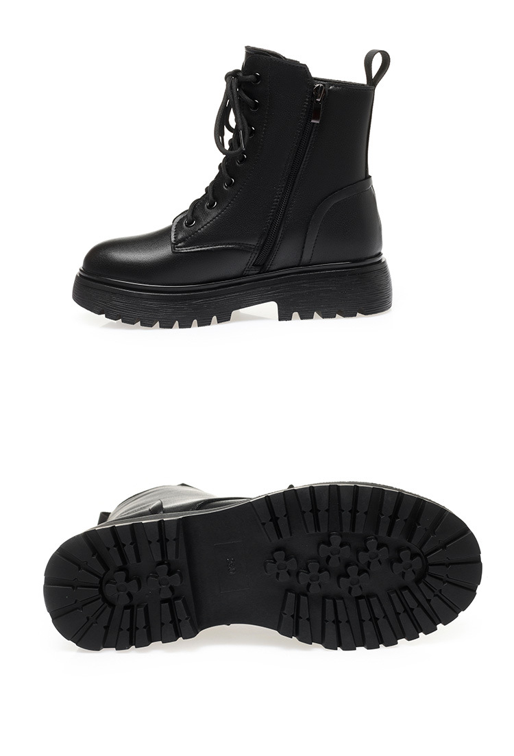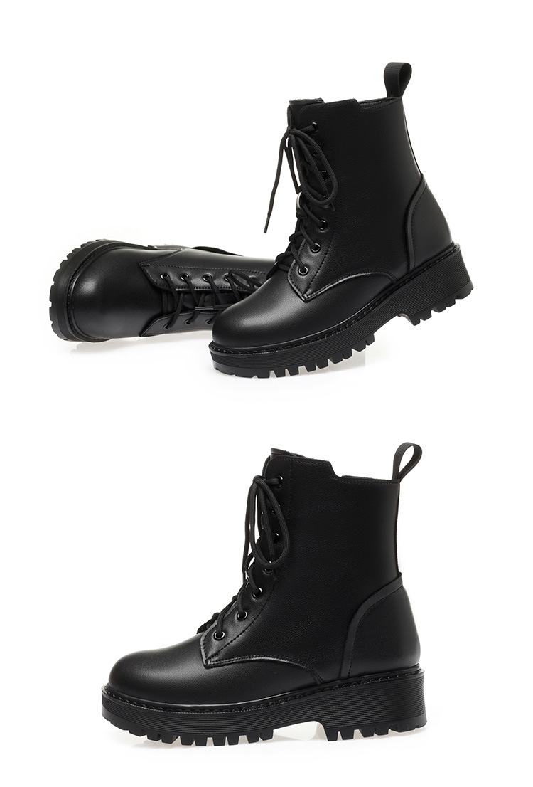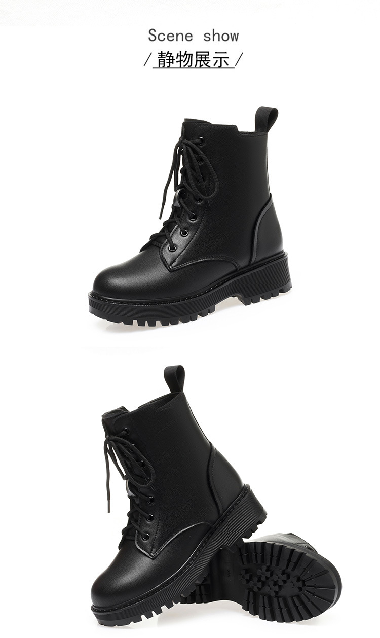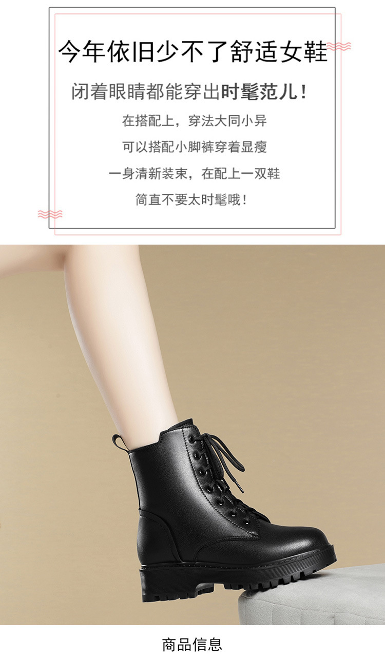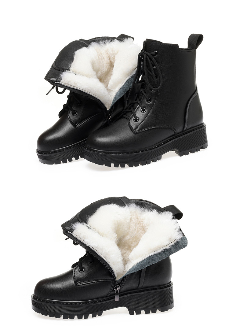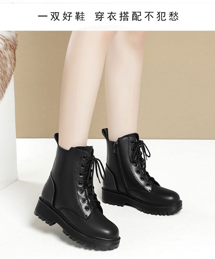 가을과 겨울 가죽 마틴 부츠 여성용 플랫 기모 두꺼워졌습니다. 2024 새로운 로우 힐 코튼 슈즈 코튼 부츠