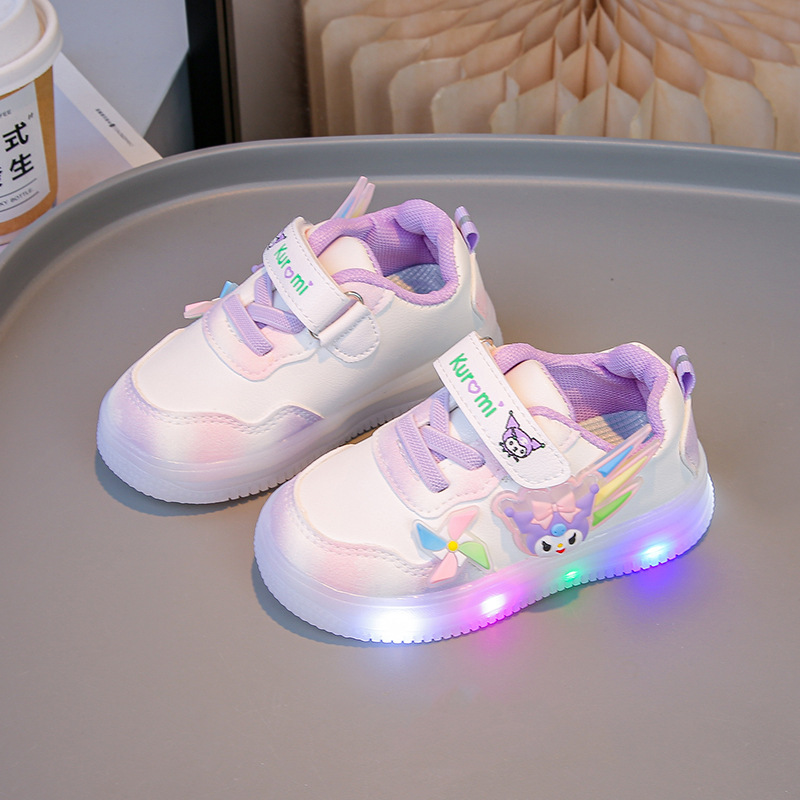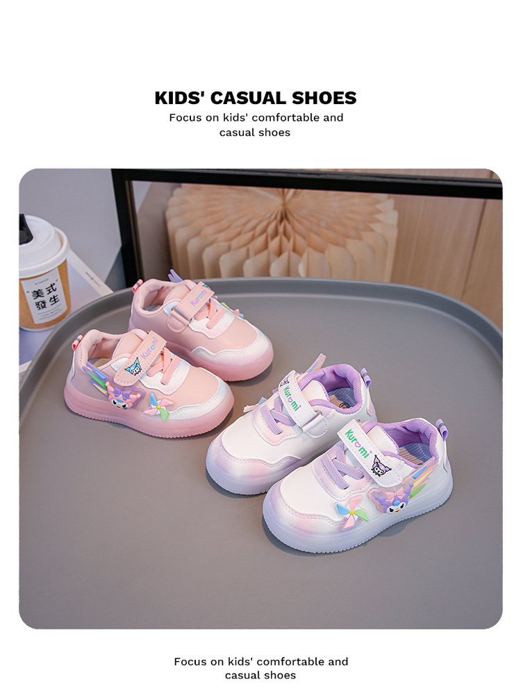 새로운 어린이 조명 운동화 2024 가을 소녀 만화 흰색 신발 화려한 한국 캐주얼 신발스토어 가기