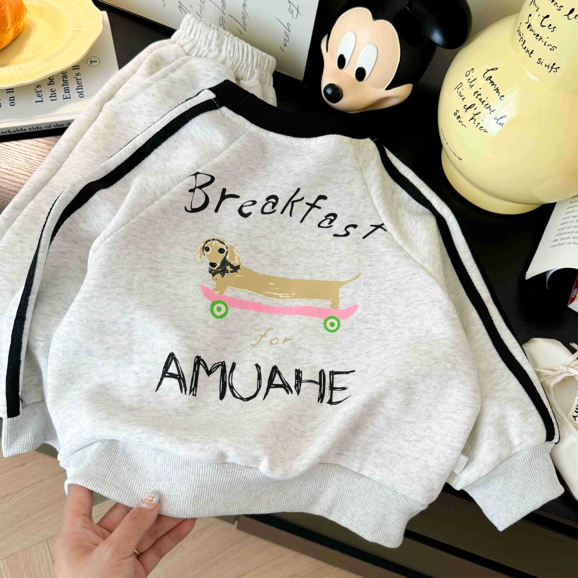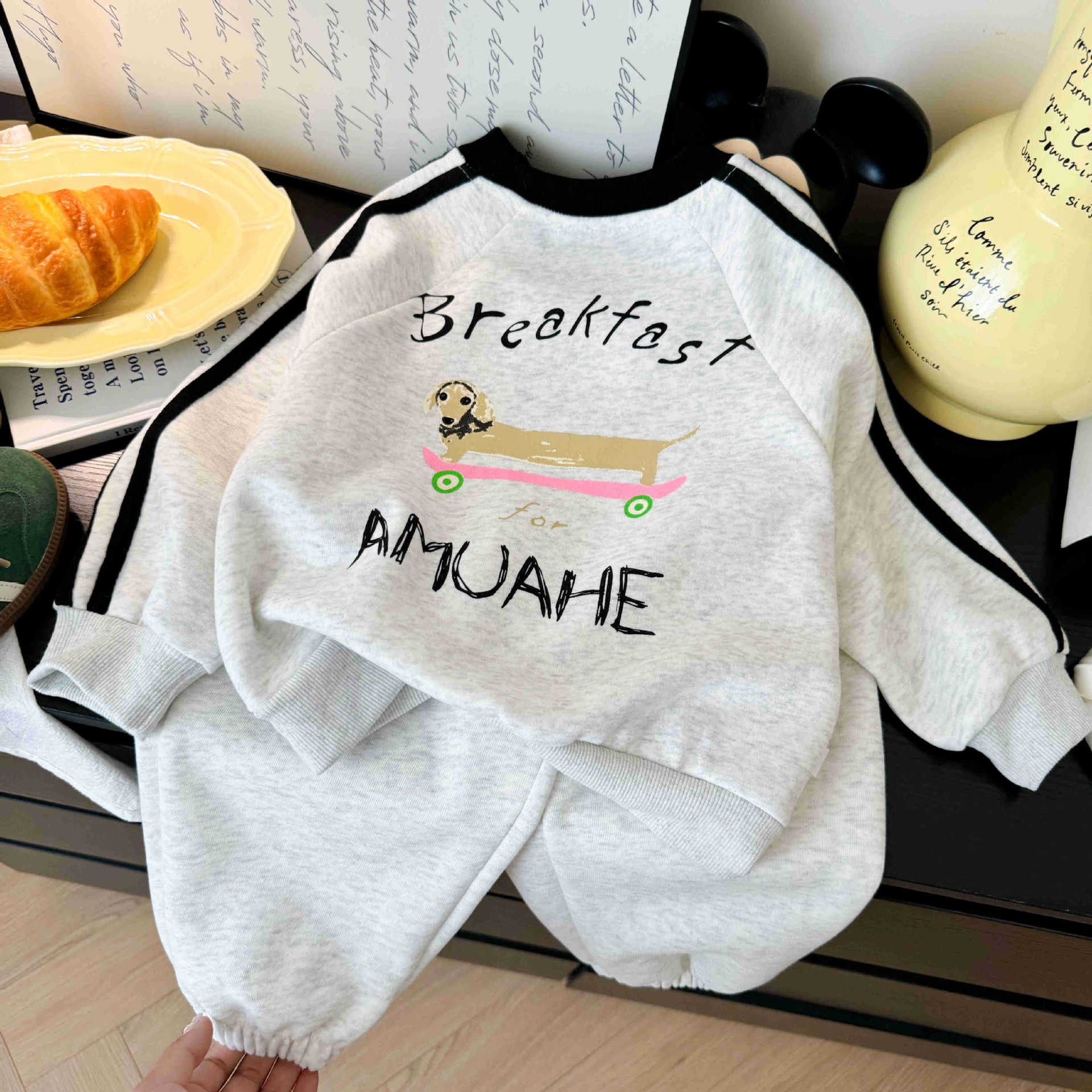 가을 2025 년 새로운 어린이 스웨트 셔츠 세트 만화 서양식 아우터웨어 스포츠 캐주얼 소년 운동복 투피스 세트
