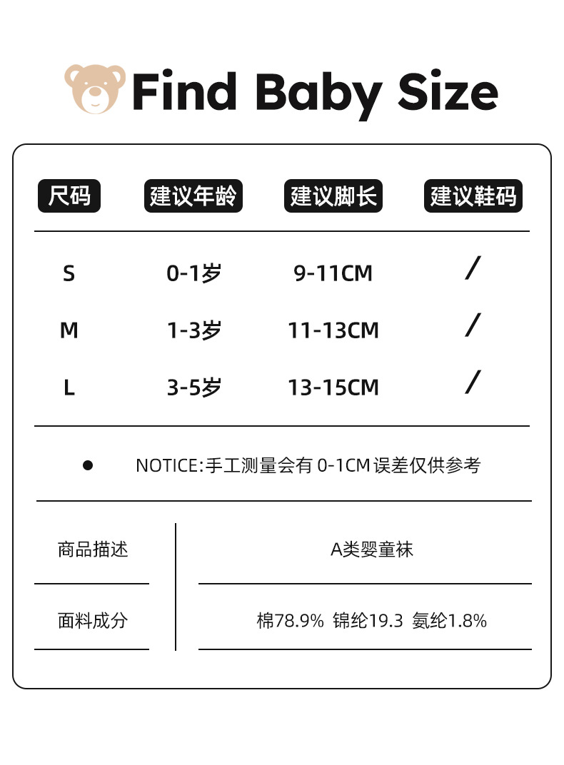 • M 사이즈(1~3세) 발 길이 11~13cm