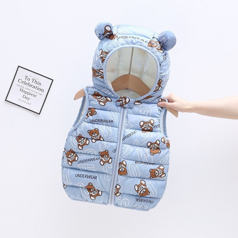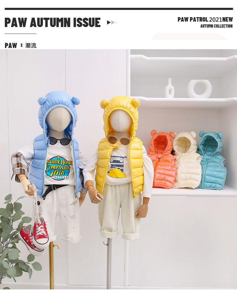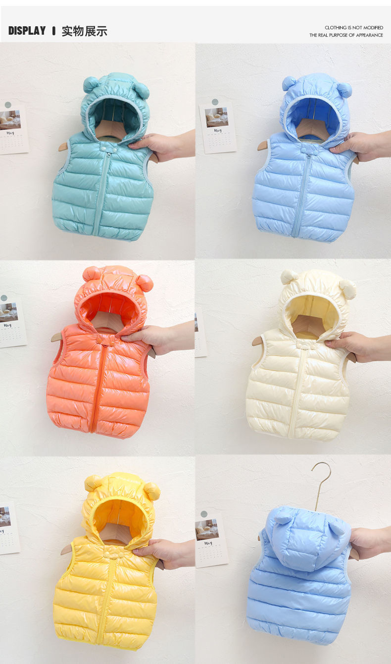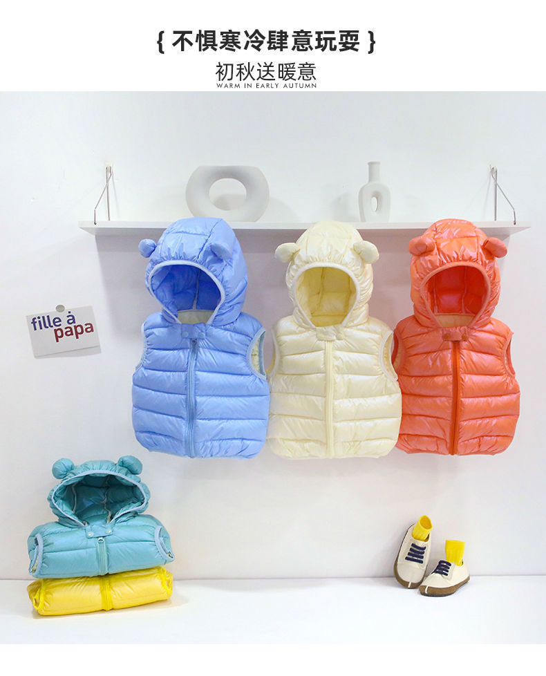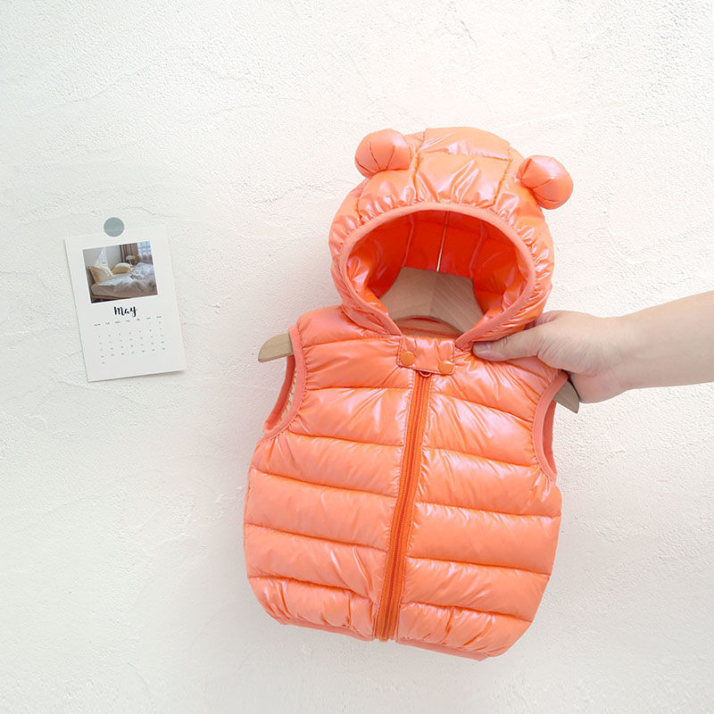 외신 입고 어린이 면화 후드 조끼 가을 · 겨울 소년 · 소녀 경량 중소형 어린이 아기 조끼스토어 가기
